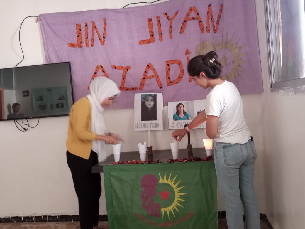 Genç Kadınlar, Şehid Gülistan Tara, Şehid Hêro Bahadin ve Dirbêsiye’de namus adı altında katledilen Nermin Ferho şahsında erkek egemenliği sistemi tarafından öldürülen ve şehit edilen tüm kadınları andı.