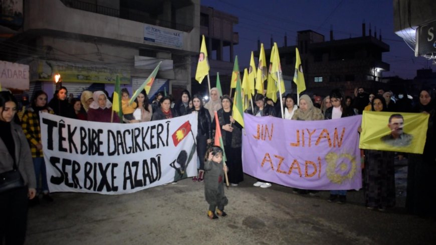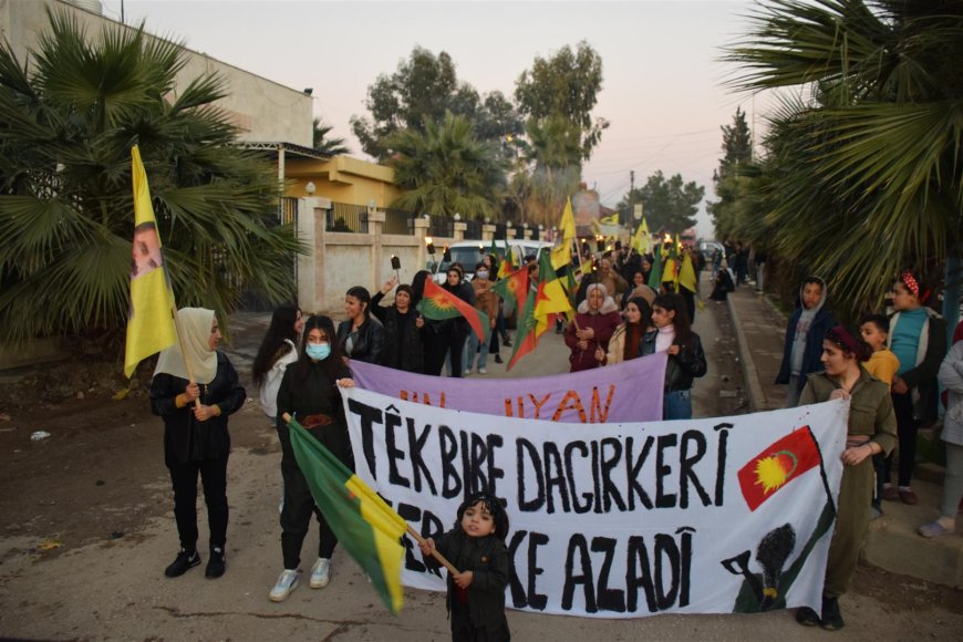 HESEKÊ- Genç Kadınlar Birliği ve Devrimci Gençlik Hareketi öncülüğünde Hesekê’nın Dirbêsiyê ilçesinde işgalci Türk devletinin Suriye’nin Kuzey ve Doğu Bölgesi’ne yönelik saldırılarını düzenledikleri yürüyüşle protesto etti. Yürüyüşe gençler başta olmak üzere çok sayıda kişi katıldı. Yürüyüş boyunca gençler tarafından HPG YJA-STAR bayrakları kadırıldı ve sıkça gerilla direnişi selamlayan sloganlar atıldı.