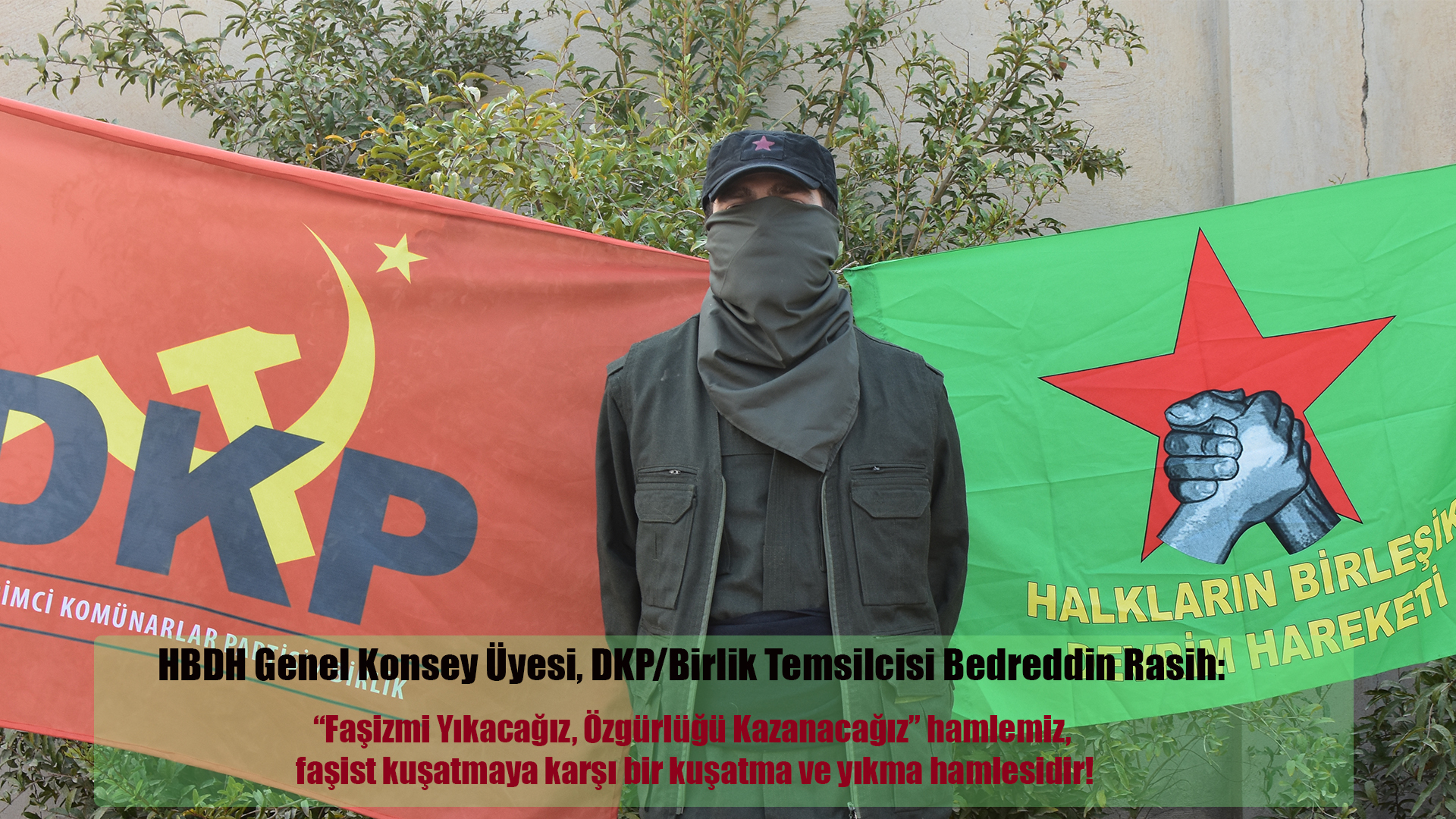 HBDH Genel Konsey Üyesi ve DKP/Birlik Temsilcisi Bedreddin Rasih: Birleşik devrim milisleri, faşist iktidarın tüm kurum ve kuruluşlarını, patronları, çeteleri hedef alıp etkisiz hale getirmelidir; hiçbir yerdeyken her yerde olmalıdır.