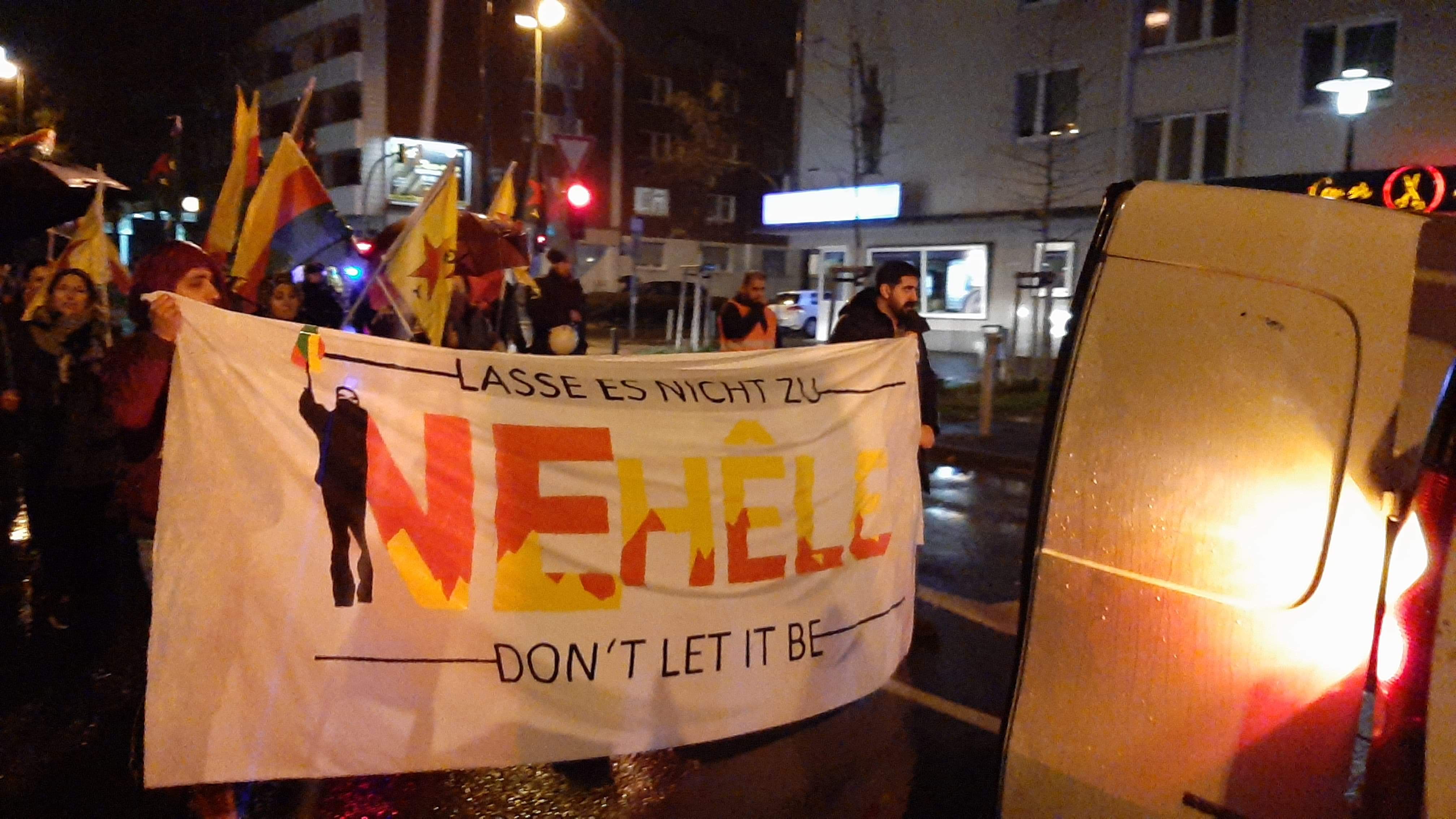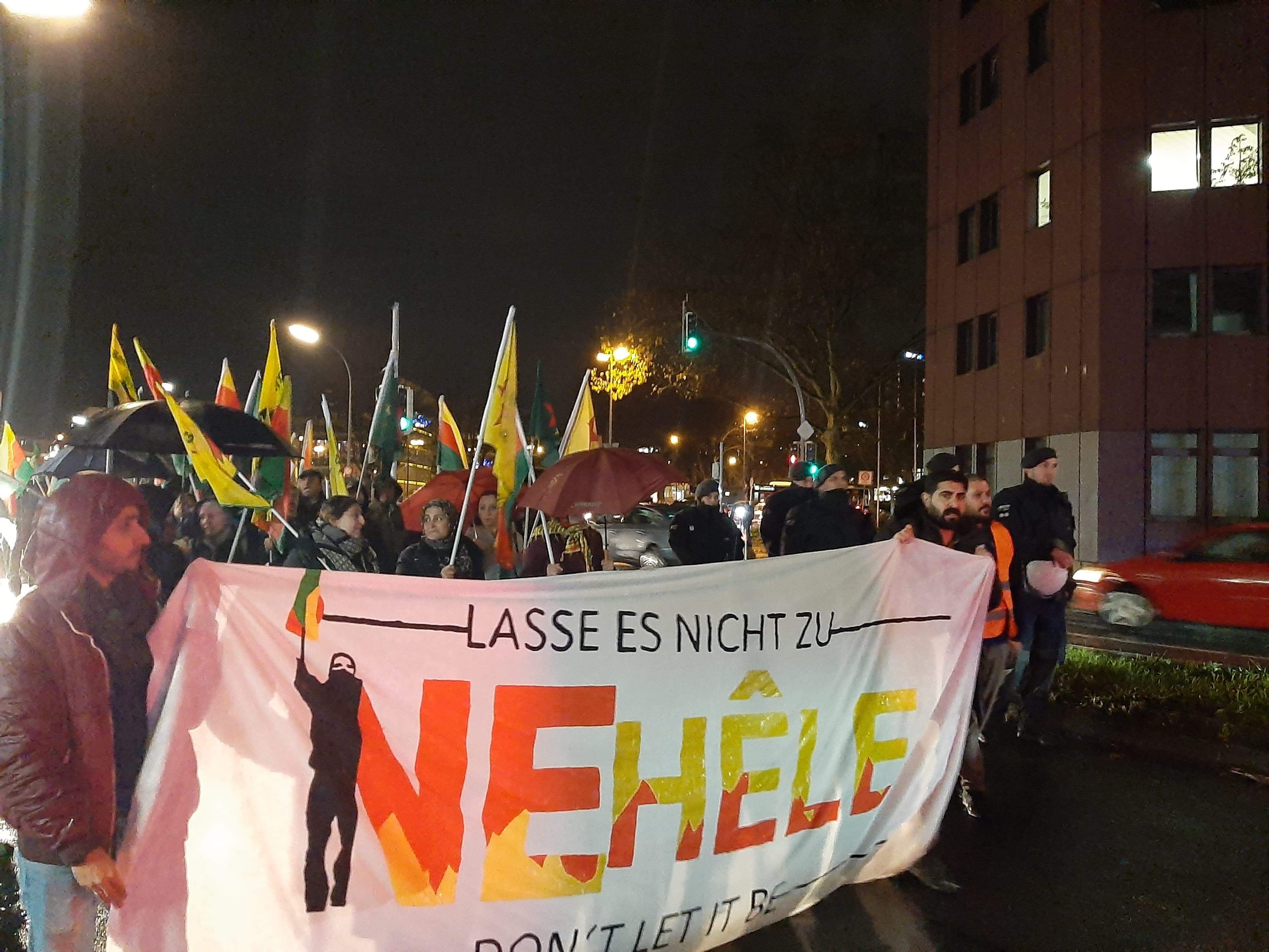 27 Kasım Çarşamba günü saat 17’de merkez tren istasyonu önünde bir araya gelen gençler, buradan Dortmund Demokratik Toplum Merkezi’ne kadar süren bir yürüyüş gerçekleştirdi. Gençleri ellerinde üzerinde Almanca, İngilizce ve Kürtçe “İzin Verme” yazan bir pankart ve YPG-YPJ, TEV-DEM bayrakları ile yürüyüşe başladı. Sık sık Almanca ve Kürtçe “Yaşasın PKK”, “Öcalan’a Özgürlük” ve “Bijî berxwedana Rojava” sloganlarını atan gençler, yürüyüş boyunca attıkları PKK’nin kuruluşu ve Onur Direnişi’ni sahiplenen slogan ve marşlarla Dortmund DTM önüne geldi. Burada PKK’nin 42 yıllık direnişi ve yarattığı değerler üzerine bir konuşma yapılırken, etkinlik halay ve marşlar ile son buldu.
