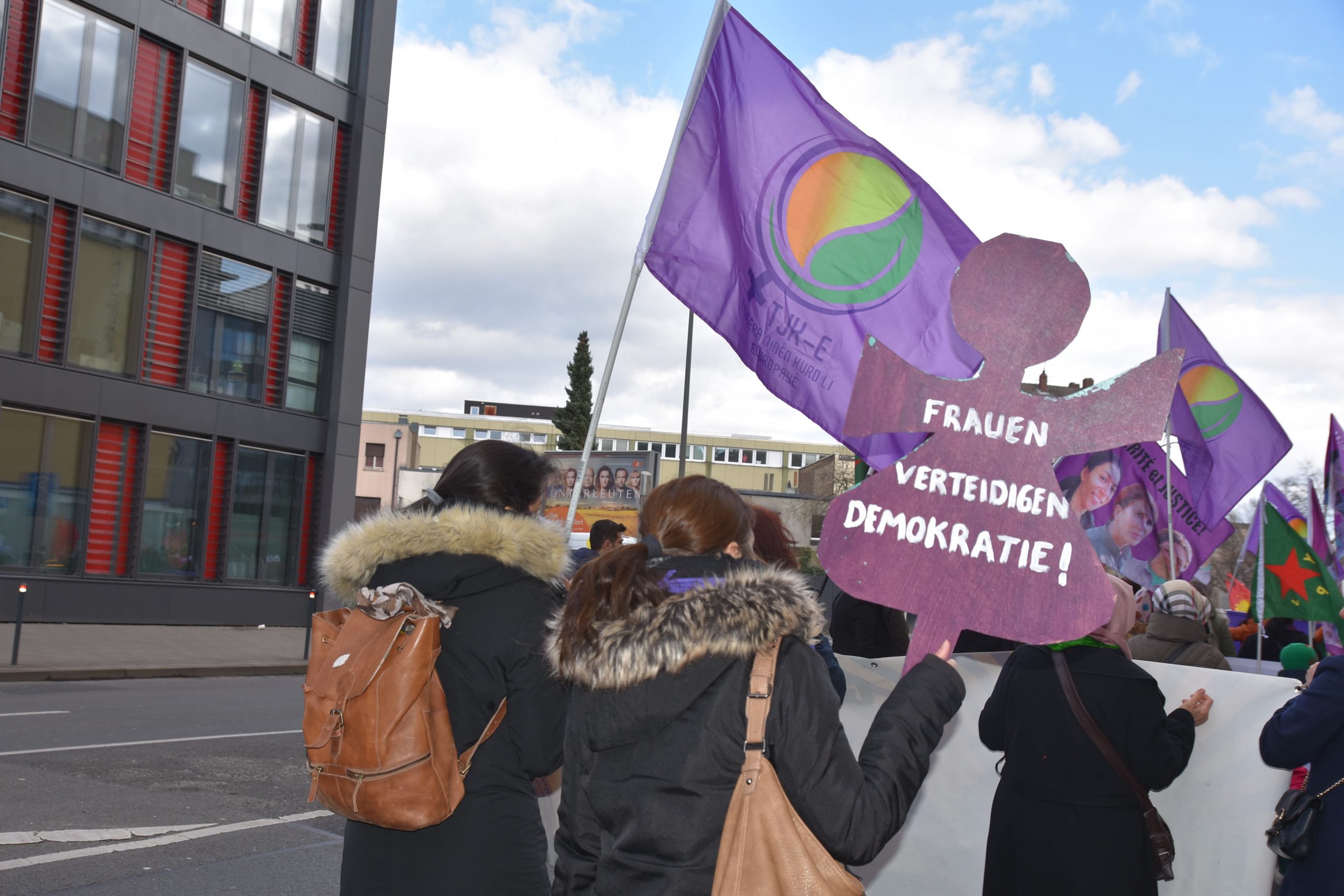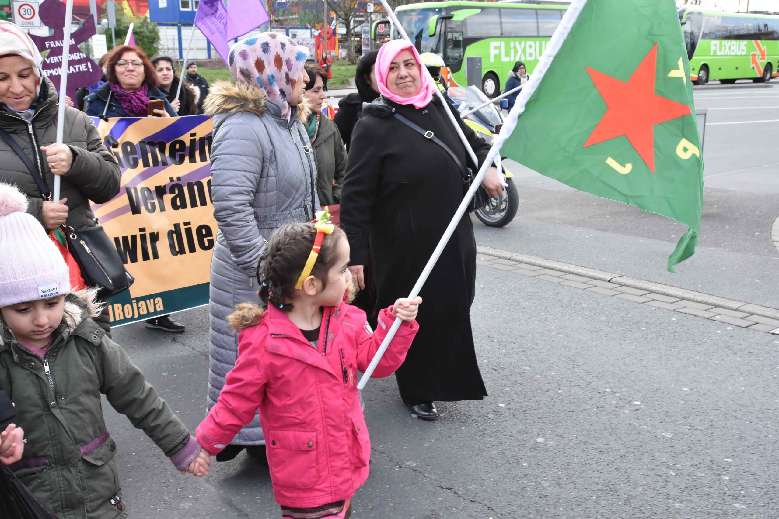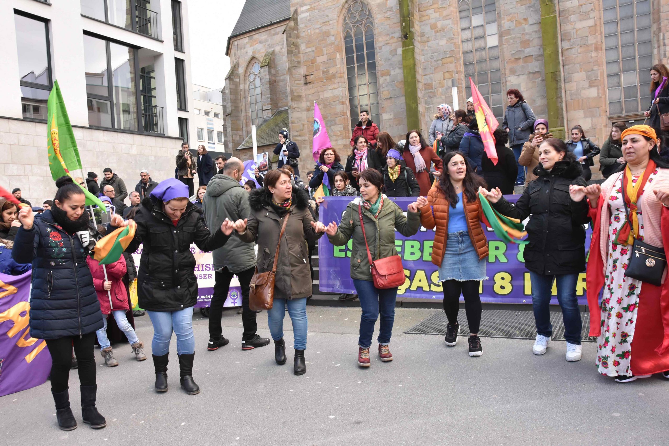 Yürüyüşe Jinên Ciwan ên Azad, JXK, TAJÊ, Crocodile E.V., DİDİF ve daha bir çok kurumun aktivistlerinin de katıldığı gözlemlenirken, yürüyüş Reinholdenkirche meydanında mitingle sonlandırıldı. Mitingde kadınların mücadelesi ve Halklar Önderi Abdullah Öcalan’ın ideoloji ve felsefesiyle tüm dünya, özelde de kadınlar demokratik modernite ile özgürlüğe kavuşacak mesajı verilirken, özgürlüğün ancak mücadelenin büyütülmesi ve Öcalan’ın özgürlüğü ile sağlanacağı dile getirildi.