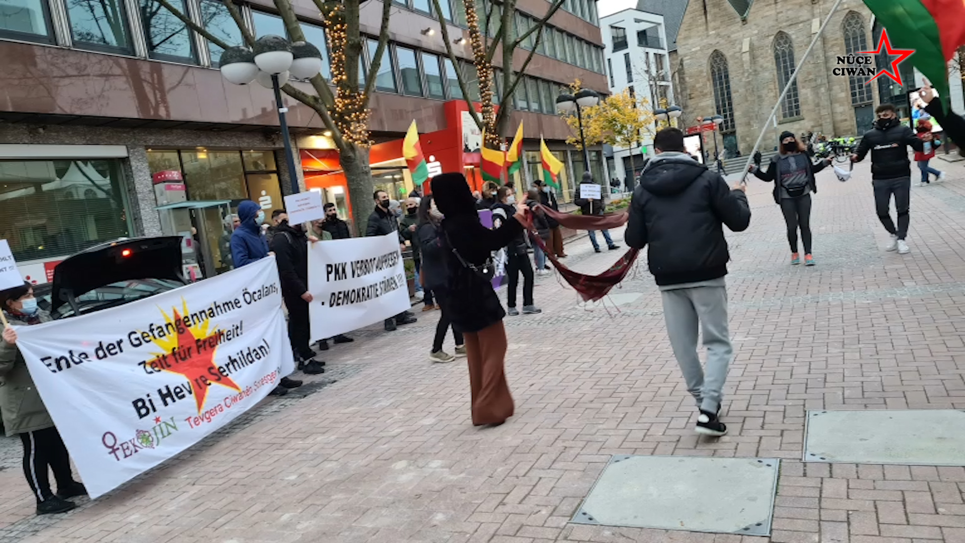 Jinên Ciwan ên Têkoşer ve Tevgera Ciwanên Şoreşger aktivisti gençler, Almanya’nın Dortmund kentinde gün içerisinde gerçekleştirdikleri eylemlerle Almanya’daki PKK yasağını protesto ederlerken Halklar Önderi Abdullah Öcalan’a fiziki özgürlük taleplerini yükselttiler.