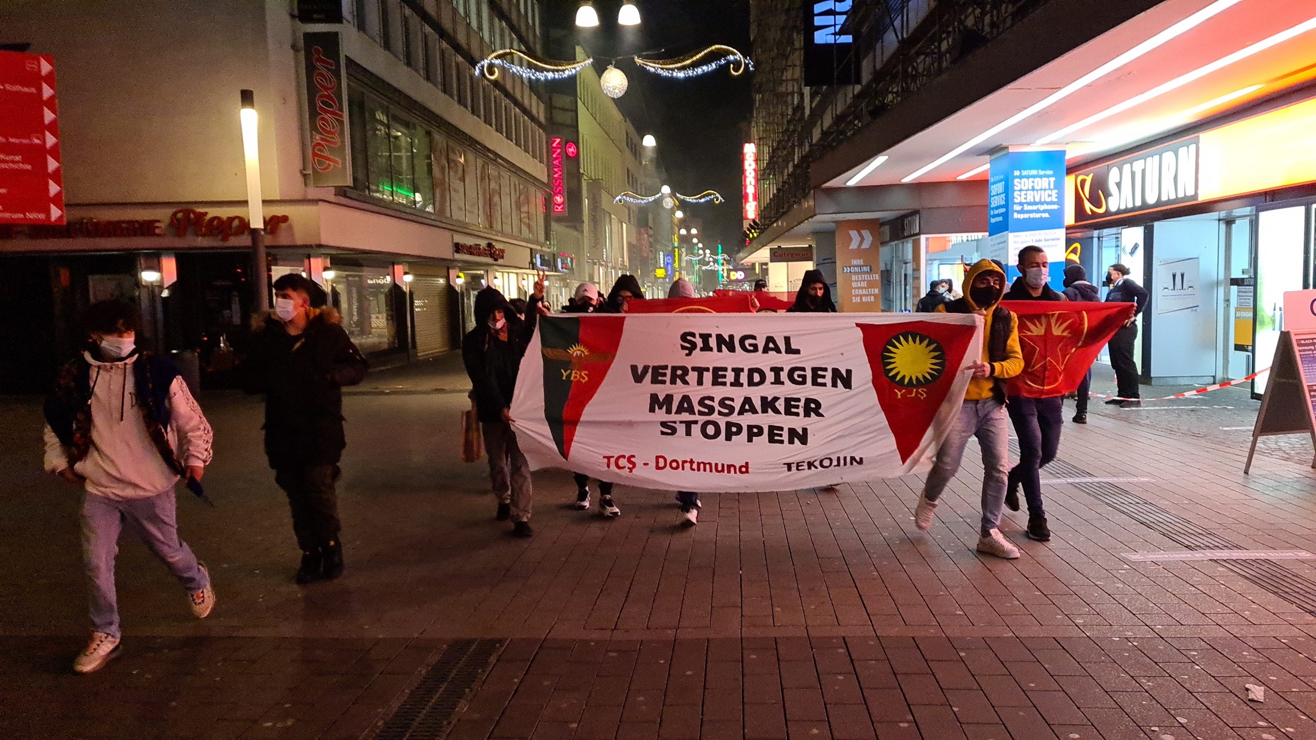 Kent merkezinde TCŞ ve PKK bayraklarıyla düzenlenen yürüyüşte gençler, “Bijî Serok APO”, “Komutan Agit Yaşıyor, PKK Savaşıyor” ve “Bijî Berxwedana Şengalê” sloganlarını attı. Yürüyüş sırasında attıkları havai fişekler çevrenin ilgisini çekerken, yürüyüş merkez tren istasyonunda sona erdi.