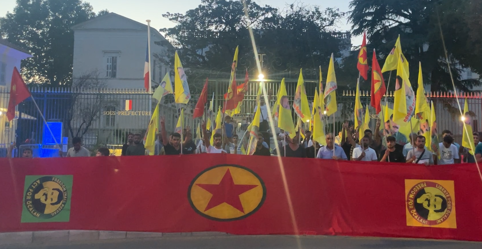 Draguignan La Poste önünde başlayan ve valilik binasına kadar süren eylemde sık sık “Bijî Serok APO” ve Fransızca dilinde “Önder APO’ya Özgürlük” sloganları atıldı.
