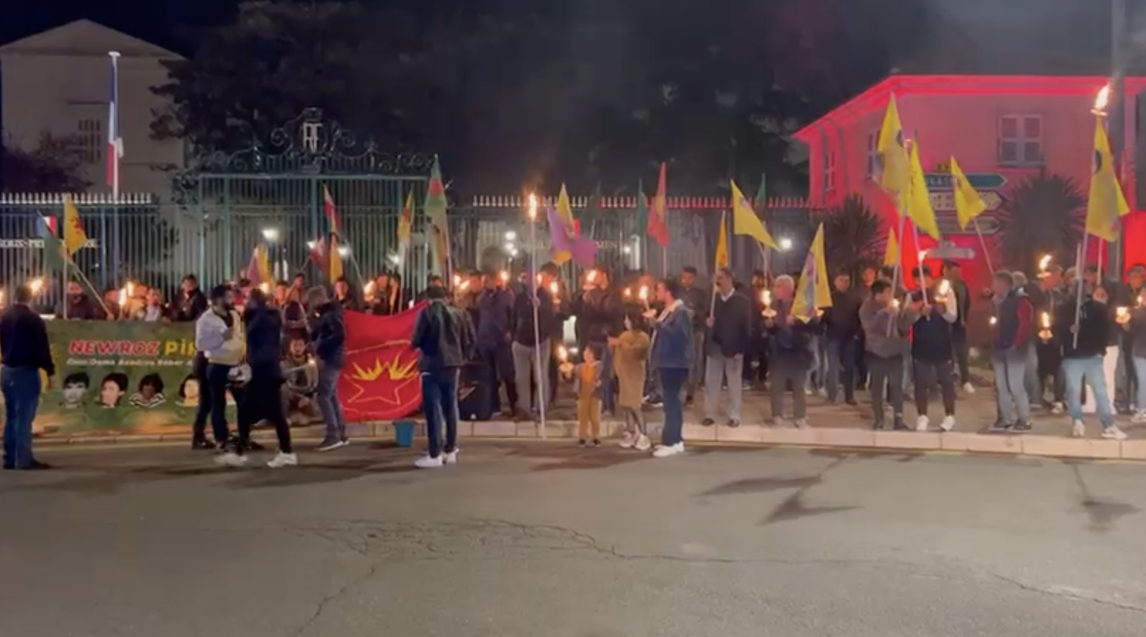 DRAGUİGNAN – TCŞ (Tevgera Ciwanên Şoreşger) aktivistlerinin öncülüğünde Fransa‘nın Draguignan kentinde „Werin Cenga Azadiyê“ hamlesi kapsamında „50. Zafer yılında Önder APO‘ya özgürlük“ şiarı ile meşaleli bir yürüyüşle Newroz kutlaması gerçekleştirildi.