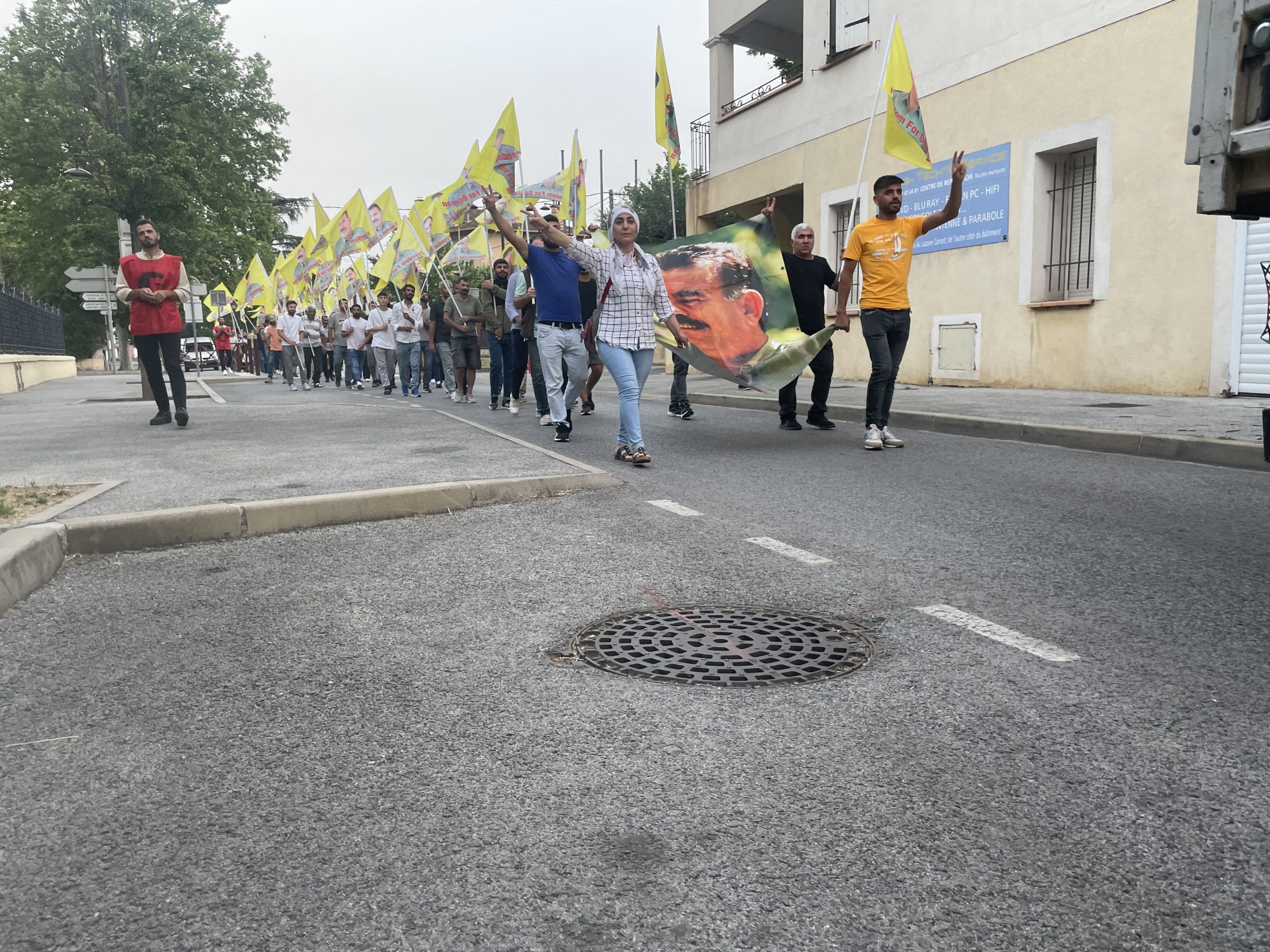 Yürüyüşte ” Bijî Serok APO” , “Bê Serok Jiyan Nabe”, ” Ciwan fedaiyen Rêber APOne” ve “Kurdistan faşizme mezar olacak” sloganları atılırken yürüyüş Draguignan Kürt Halk Merkezi önünde son buldu.
