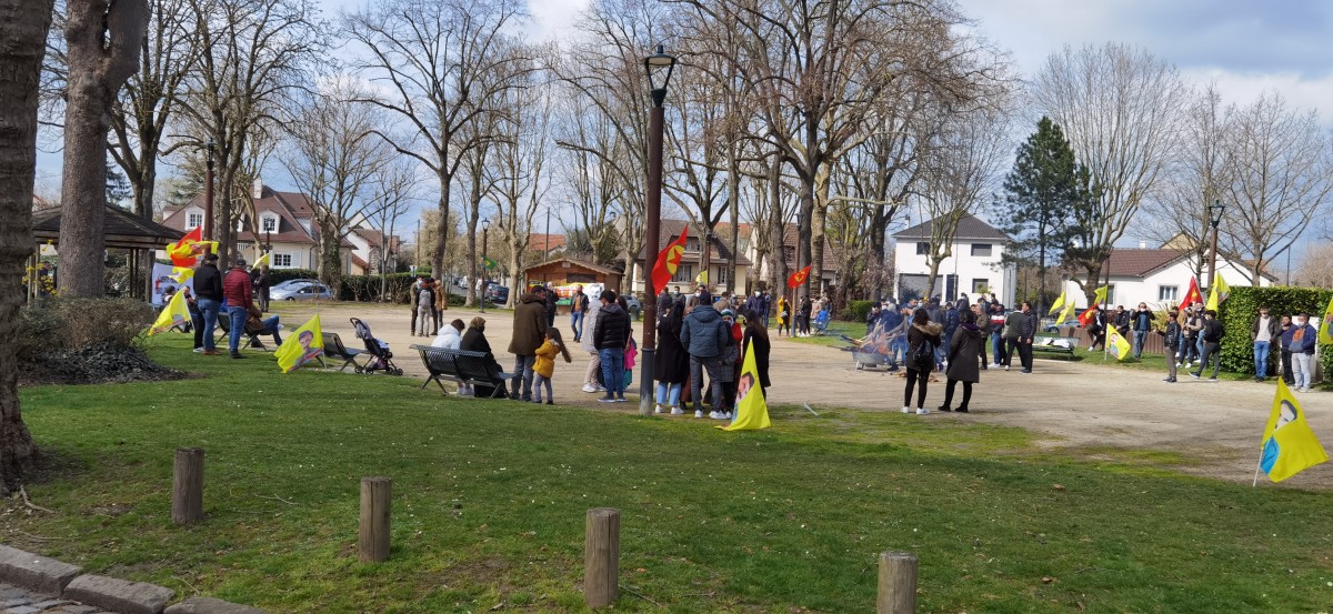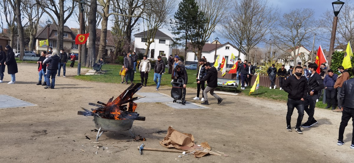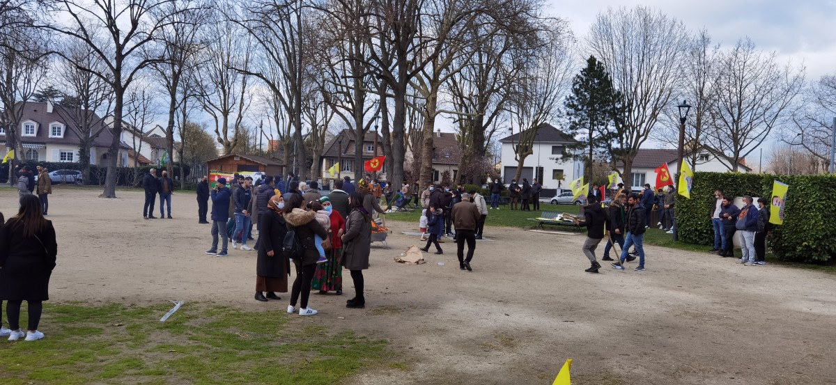 Dışarı çıkma yasağına rağmen Newrozu kutlayan kitleye Fransız polisi müdahale etmek istedi. Polise karşı direniş gösteren halk aynı çoşku ile kutlamalarını sloganlarla sonlandırdı.