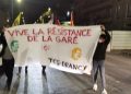 Eylem boyunca üzerinde Fransızca “Vive la résistance de la Garê(Yaşasın Garê Direnişi)” yazan pankart ve PKK bayrakları taşıyan gençler, renkli dumanlar ve havai fişeklerle eylemlerine görsellik kattılar. Eylemde sık sık “Bijî Serok APO” ve “Bijî Berxwedana Garê” sloganları atıldı.