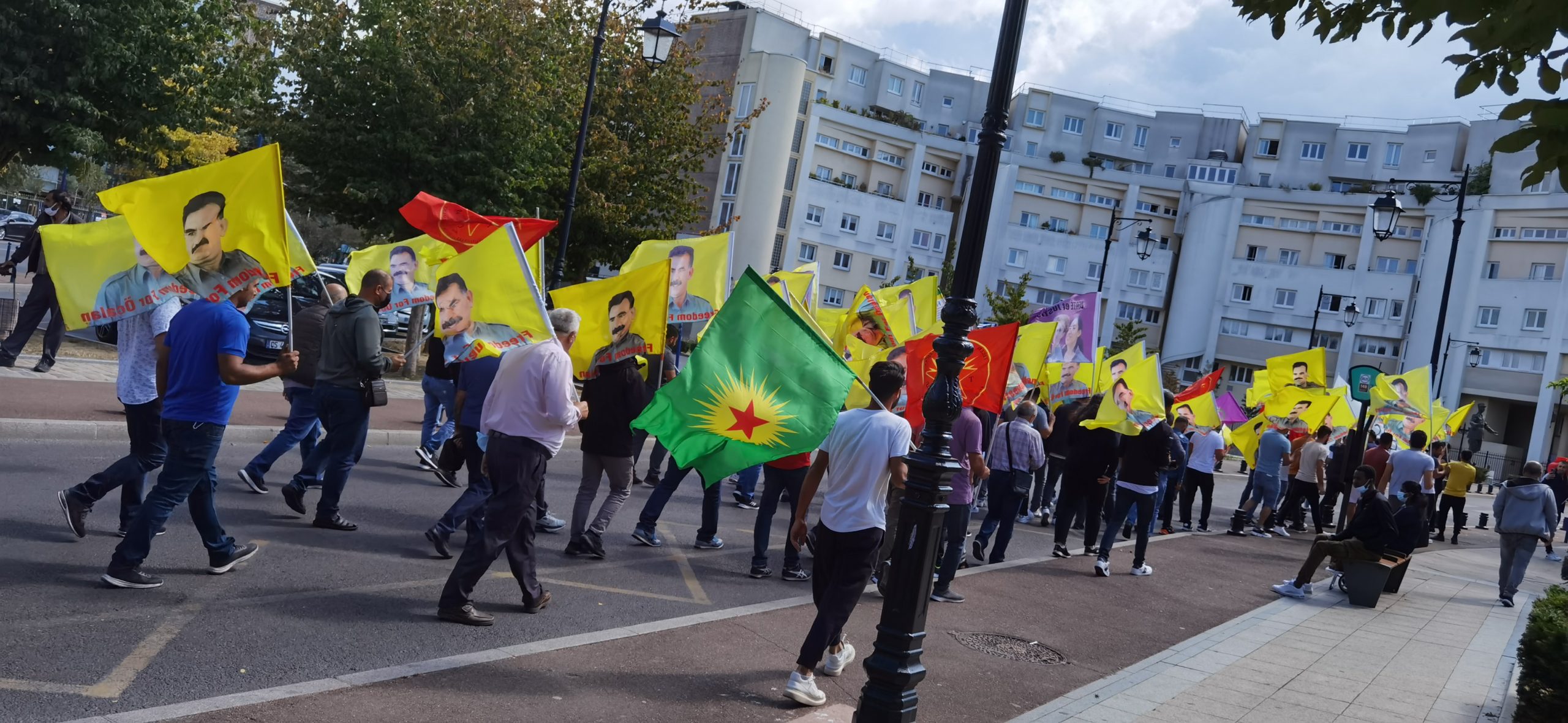 Yürüyüş Kürdistan Devrim Şehitleri anısına bir dakikalık saygı duruşunun ardından Drancy Kürt Toplum Merkezi önünde başladı. Yürüyüş boyunca sık sık “Bijî Serok APO”, “Liberte Pour Öcalan”, “Bijî Berxwedana Gerîla”, “Terorist Erdogan”, “A bas le régime fasciste en Turquie (Kahrolsun Faşist Türk Rejimi)” ve “Şehîd Namirin” sloganları attılar.