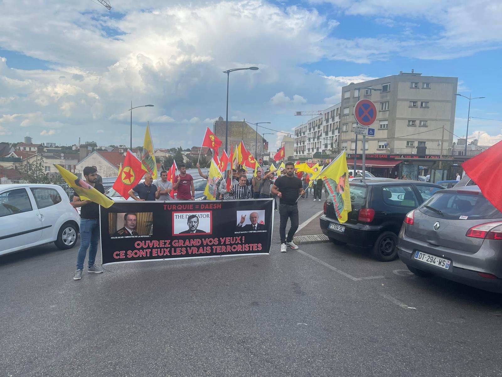 DRANCY – Drancy garının önünde bir araya gelen Kürdistanlılar üzerinde “Daiş=Erdoğan” ve “İntikam” yazan pankartları ve TCŞ – TekoJIN bayraklarını açarak Bobigny garına doğru yürüyüşe geçti.