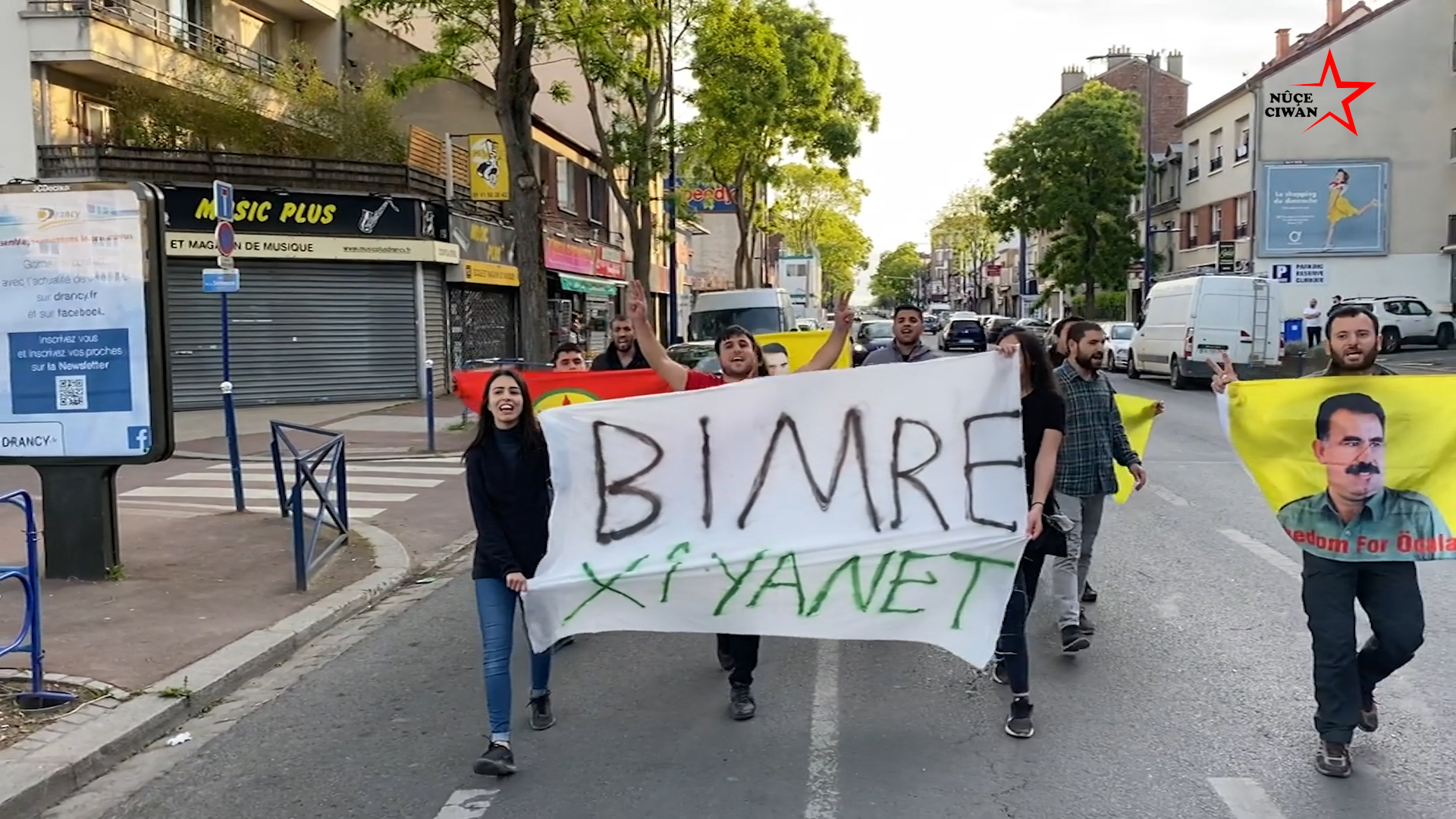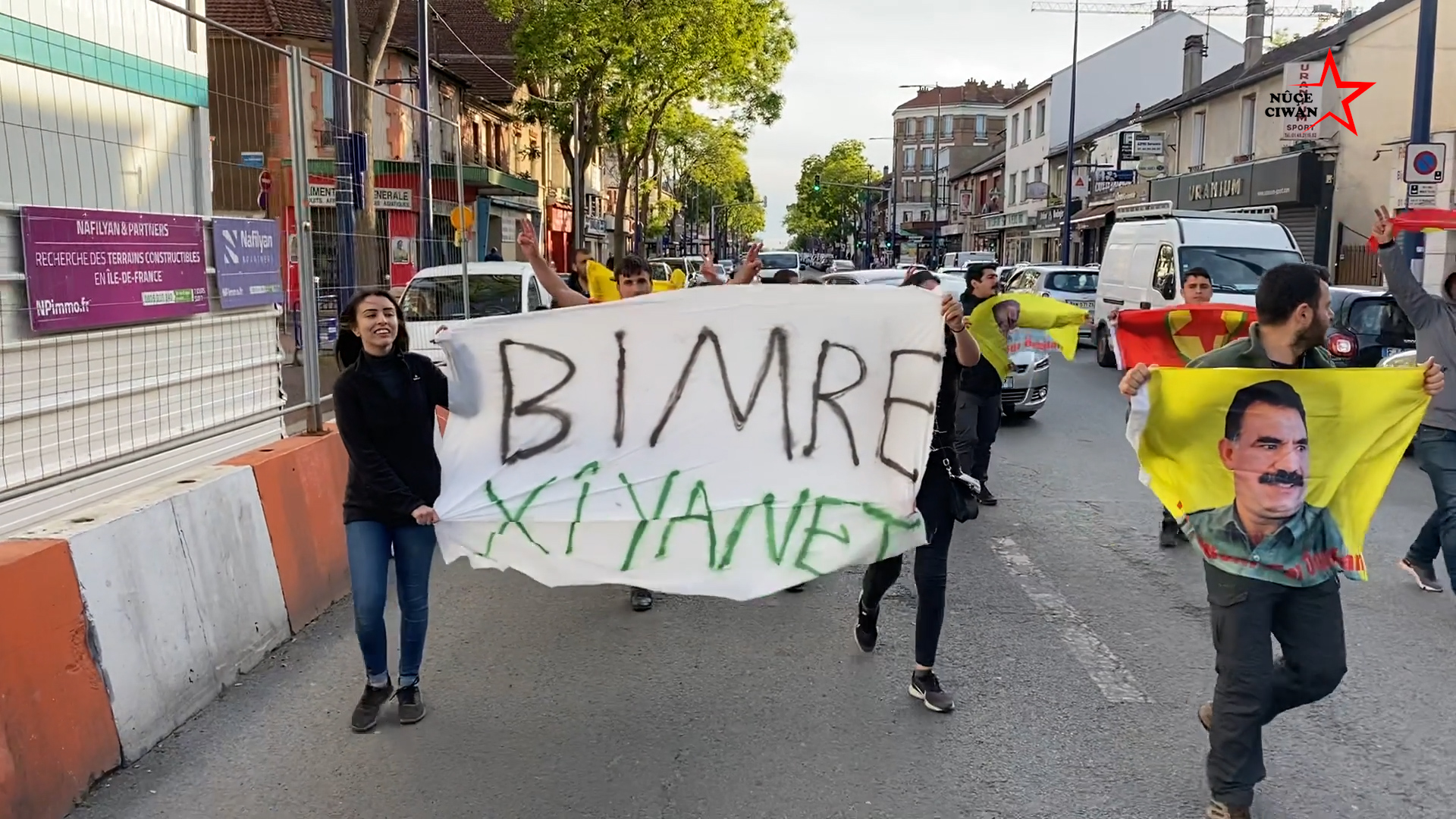 Nehêle hamlesi kapsamında “İhanete izin verme” şiarıyla Paris’in Drancy banliyösünde akşam saatlerinde bir araya gelen gençler, yolu trafiğe kapatarak eylemlerine başladı. Eylemde ‘Bimre xîyanet’ yazan bir pankart taşıyan gençler “Êdî bes e KDP”, “Bijî Serok APO”, “Katil Erdoğan”, “Katil Türkiye” ve “Bijî Partiya Karkerên Kurdistan” sloganlarını attı. Ellerinde Halklar Önderi Abdullah Öcalan’ın posterleri ve PKK flamalarıyla yolu bir süre trafiğe kapatan gençler, daha sonra yürüyüşe başladı. Slogan ve marşlar eşliğinde yürüyüş yapan gençlere o sırada sokakta olan halk korna ve alkışlar ile destek verdi.