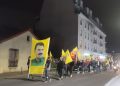 „Werin Cenga Azadiyê“ hamlesi kapsamında bir araya gelen gençler sık sık Fransızca „Önder Öcalan‘a özgürlük „ sloganını attılar.