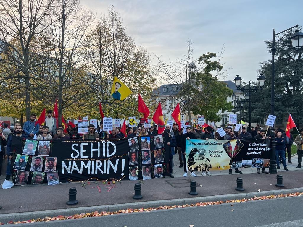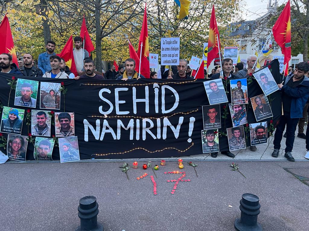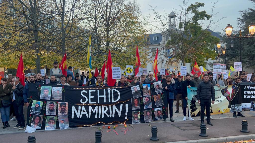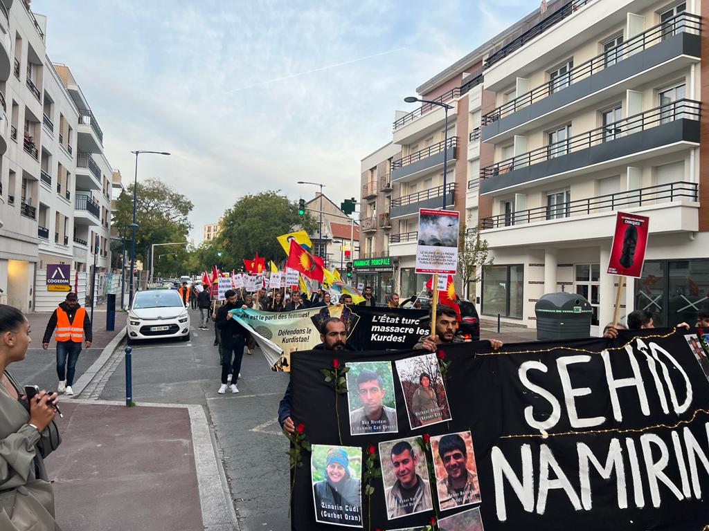 Drancy belediyesi önüne kadar yürüyen kitle burada basın açıklaması gerçekleştirdi. Basın açıklaması tüm Kürdistan Devrim Şehşitleri anısına bir dakikalık saygı duruşu ile başladı.