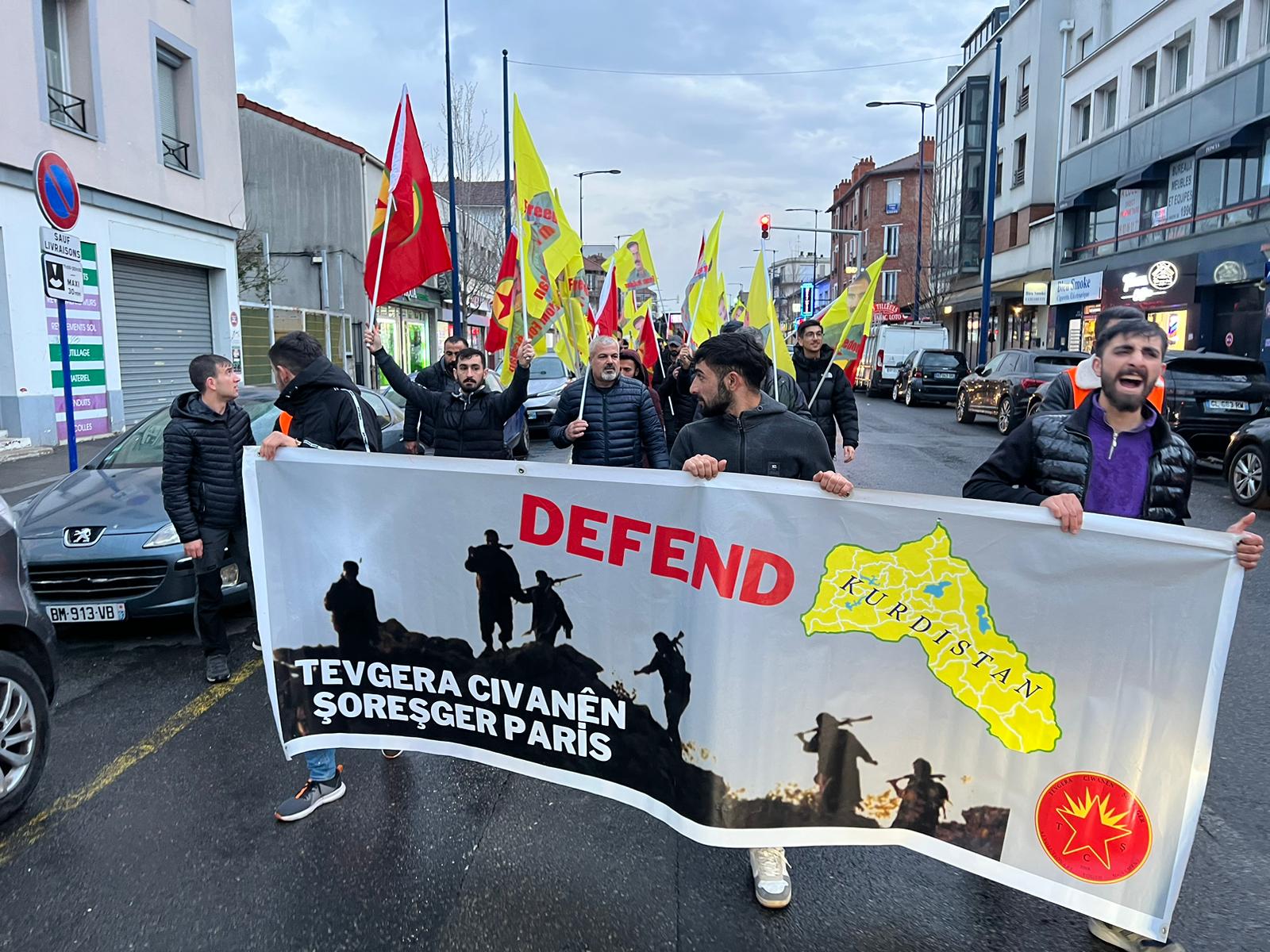 PARİS – Fransa’nın başkenti Paris’in Drancy banliyösünde bulunan Kürt Kültür Merkezi önünde bir araya gelen Tevgera Ciwanên Şoreşger (TCŞ) ve Jinên Ciwan ên Tekoşer (TekoJIN) üyeleri, Halklar Önderi Abdullah Öcalan’ın fiziki özgürlüğü için “Werin Cenga Azadiyê” hamlesi kapsamında yürüyüş ve miting düzenledi.