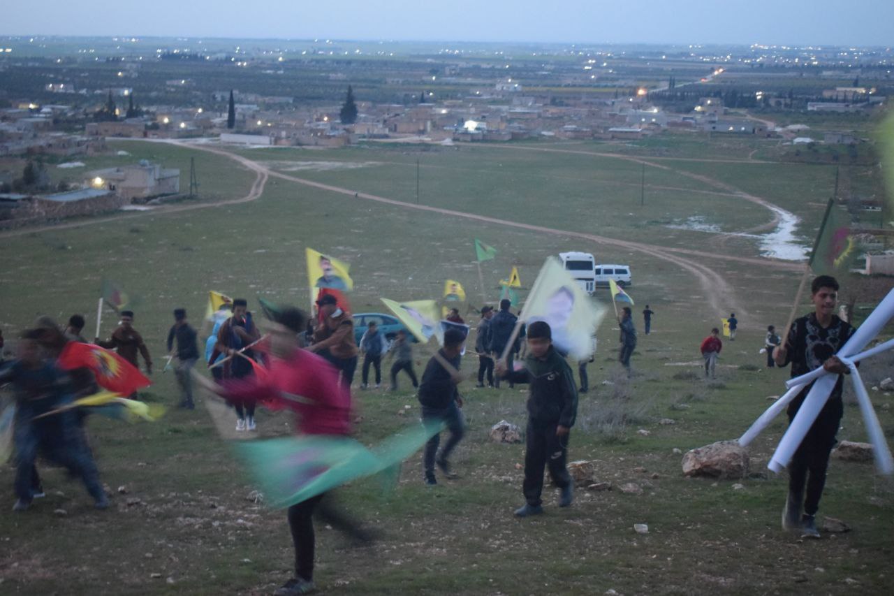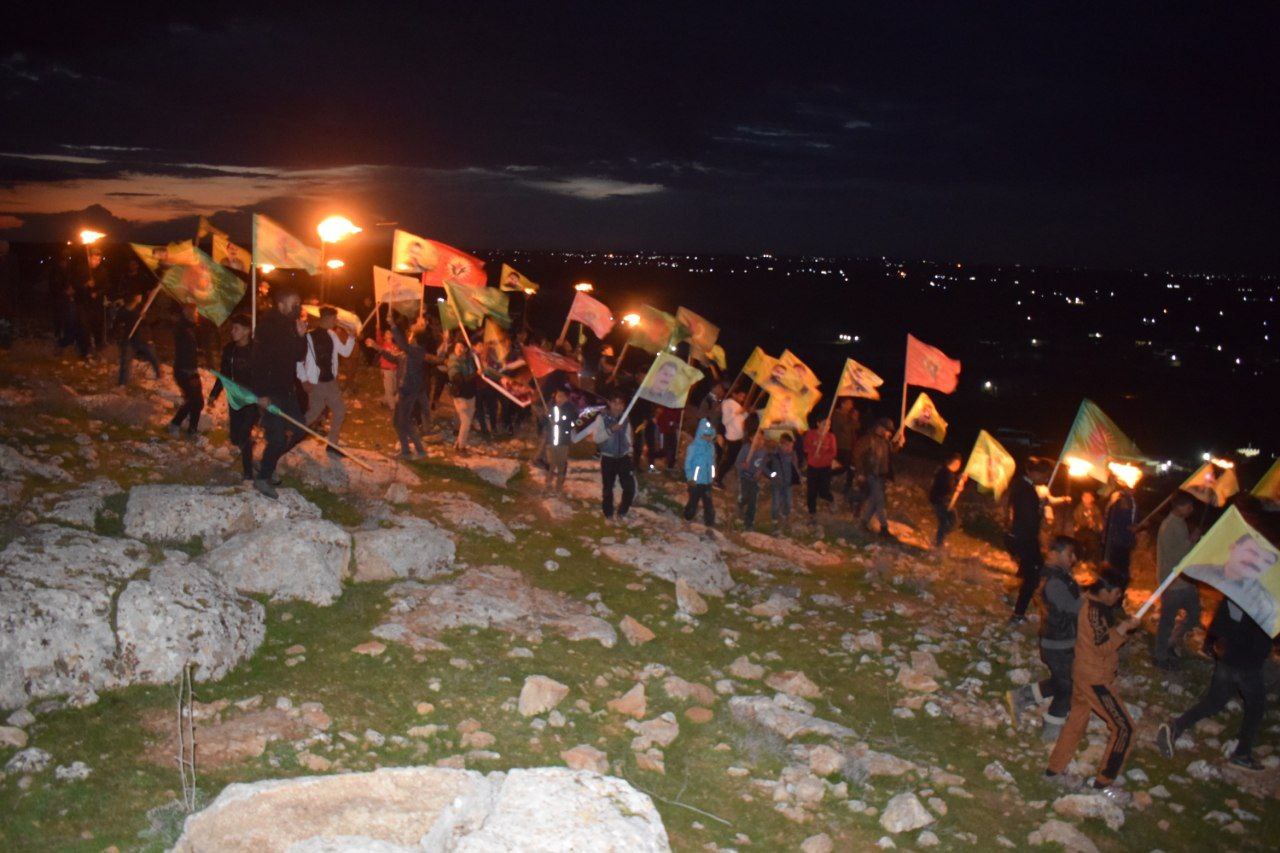 MINBIC- 8 Mart Dünya Emekçi Kadınlar Günü etkinlikleri kapsamında Devrimci Gençlik Hareketi ve Genç Kadınlar Birliği, 8 Mart Dünya Emekçi Kadınlar Günü dolayısıyla Minbiç kentinin Muharrak köyünde meşaleli yürüyüş düzenledi.