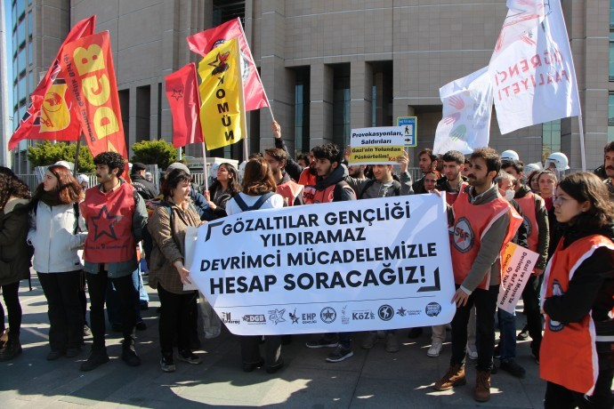 Ezilenlerin Sosyalist Partisi (ESP) Parti Meclisi, Sosyalist Gençlik Dernekleri Federasyonu (SGDF) ve Sosyalist Kadın Meclisi (SKM) üyeleri, İstanbul Cumhuriyet Başsavcılığı tarafından yürütülen soruşturma kapsamında 12 Mart’ta gözaltına alınan üyelerinin serbest bırakılması için dün Çağlayan’da bulunan İstanbul Adliyesi önünde protesto gösterisi düzenledi.