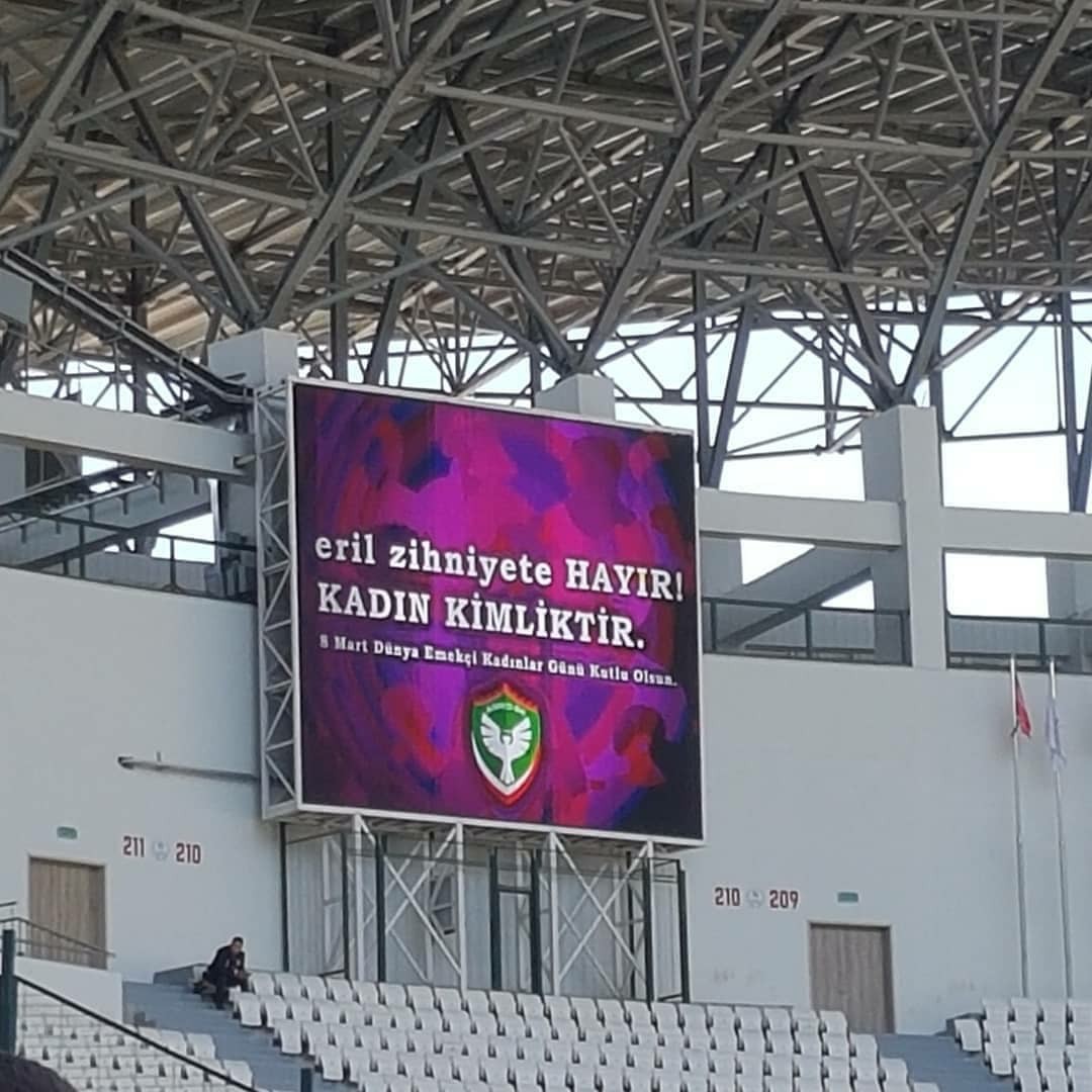 AMED- 8 Mart Dünya Emekçi Kadınlar Günü, Bakurê Kurdistan ve Türkiye’nin dört bir yanında kutlanmaya devam ediyor. Amedspor 8 Mart Dünya Emekçi Kadınlar Günü’nü sahasına ‘Eril zihniyete HAYIR! Kadın Kimliktir’ yazılı bir pankart asarak kutladı.