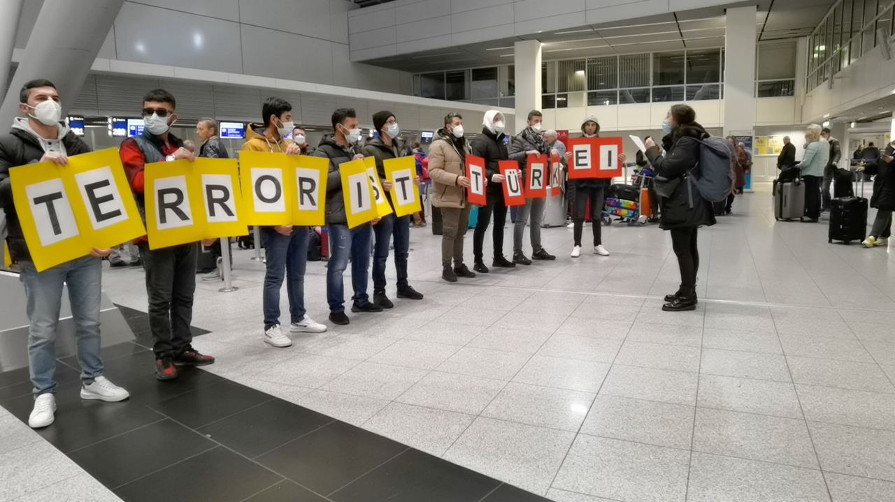 DÜSSELDORF – Faşist Türk devletinin Rojava’daki işgal ve soykırım saldırılarına karşı Almanya’nın Düsseldorf Havaalanı’nda bir araya Tevgera Ciwanên Şoreşger (TCŞ) ve Jinên Ciwan ên Têkoşer (TekoJIN) üyesi gençler sivil itaatsizlik eylemi gerçekleştirdi.