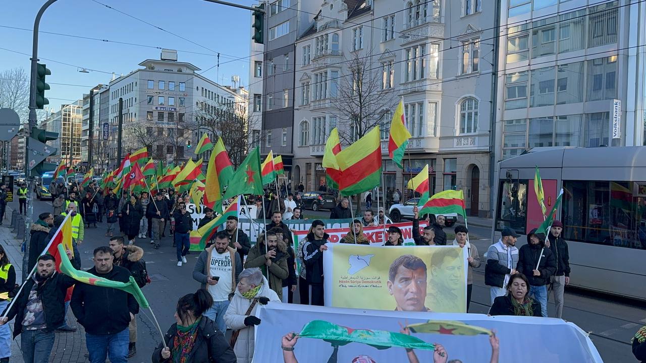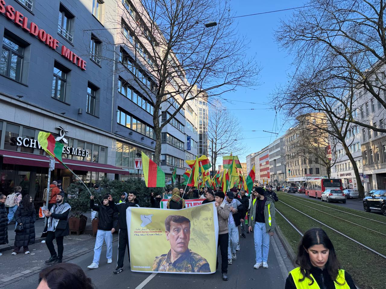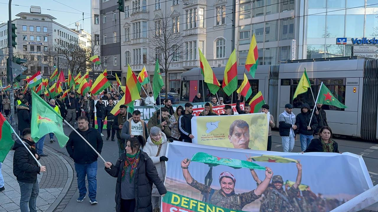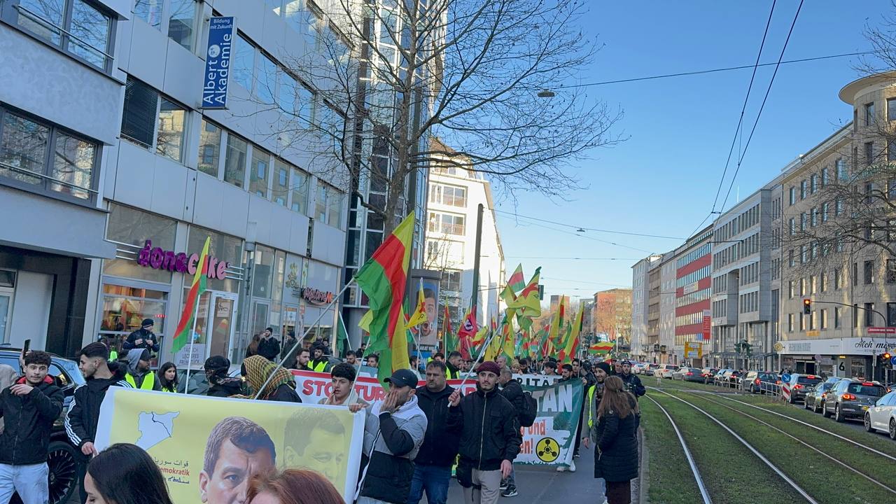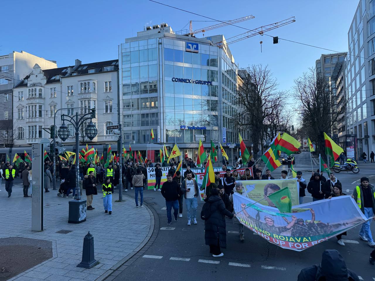 DÜSSELDORF- Tevgera Ciwanên Şoreşger (TCŞ) üyeleri, Rojava’ya yönelik işgal saldırıları ve Tişrîn Barajı direnişine destek veren sivillerin katledilmesini protesto etmek amacıyla Almanya’nın Düsseldorf kentinde bir yürüyüş düzenledi.