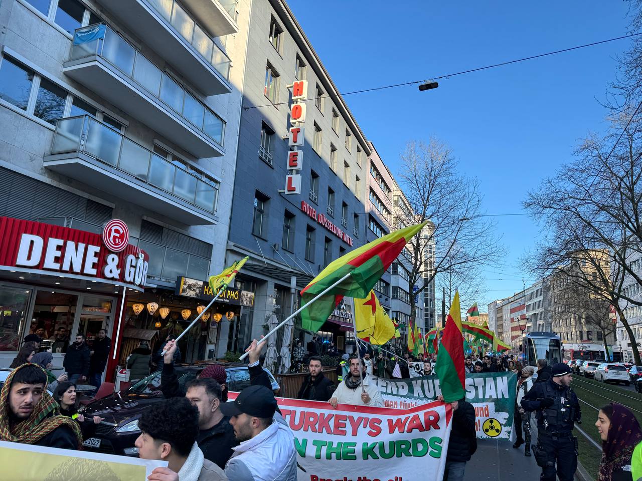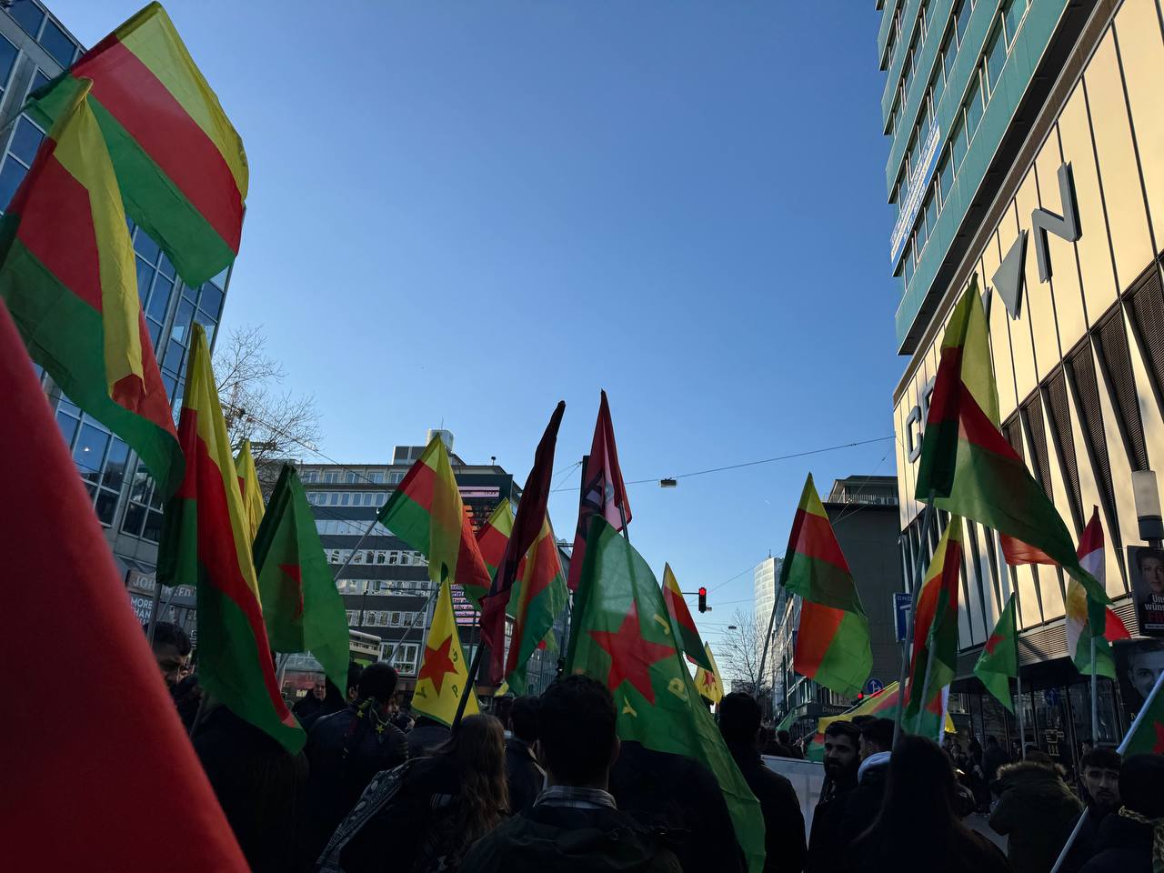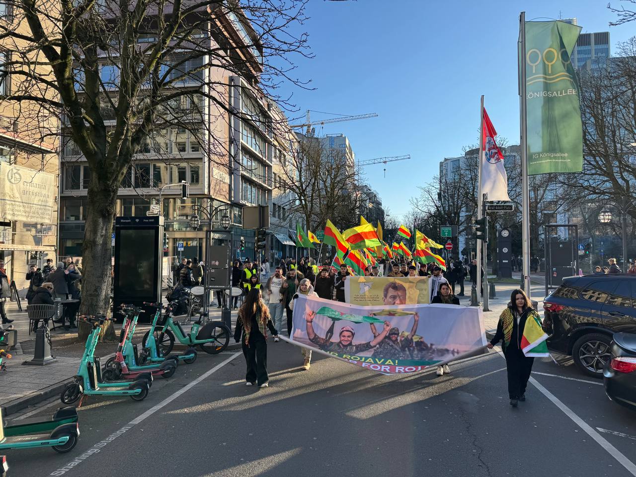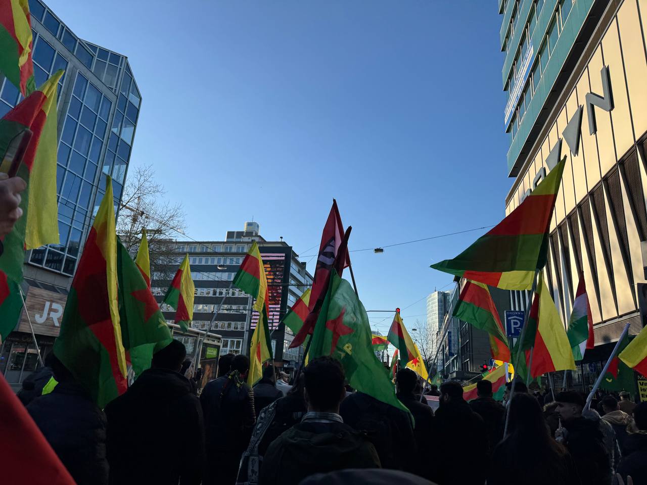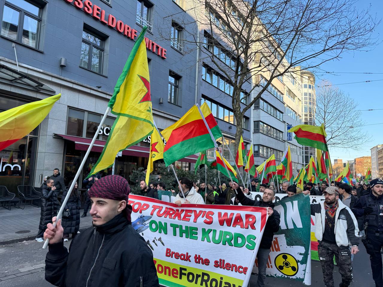 DÜSSELDORF- Tevgera Ciwanên Şoreşger (TCŞ) üyeleri, Rojava’ya yönelik işgal saldırıları ve Tişrîn Barajı direnişine destek veren sivillerin katledilmesini protesto etmek amacıyla Almanya’nın Düsseldorf kentinde bir yürüyüş düzenledi.