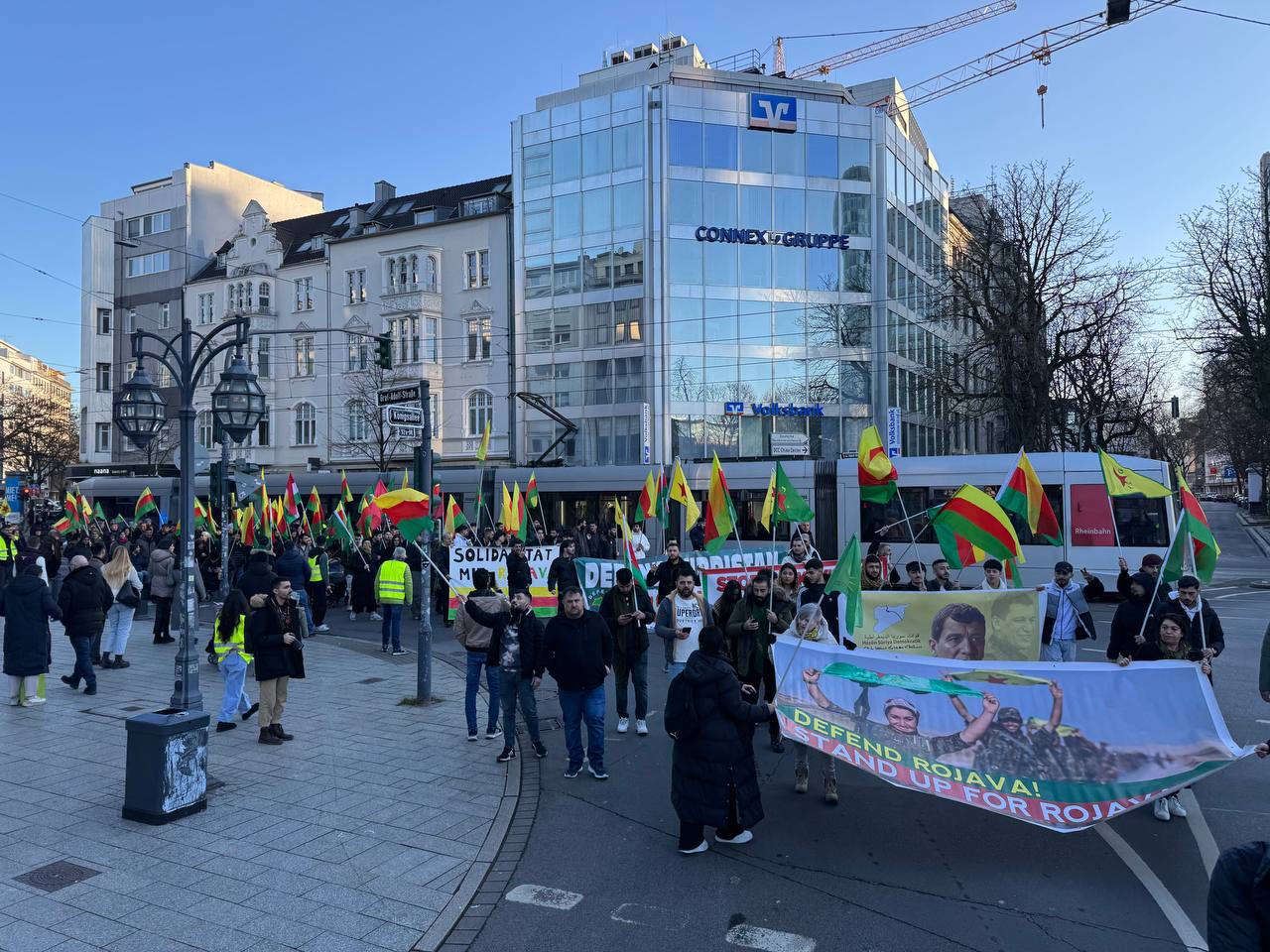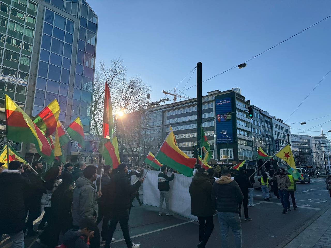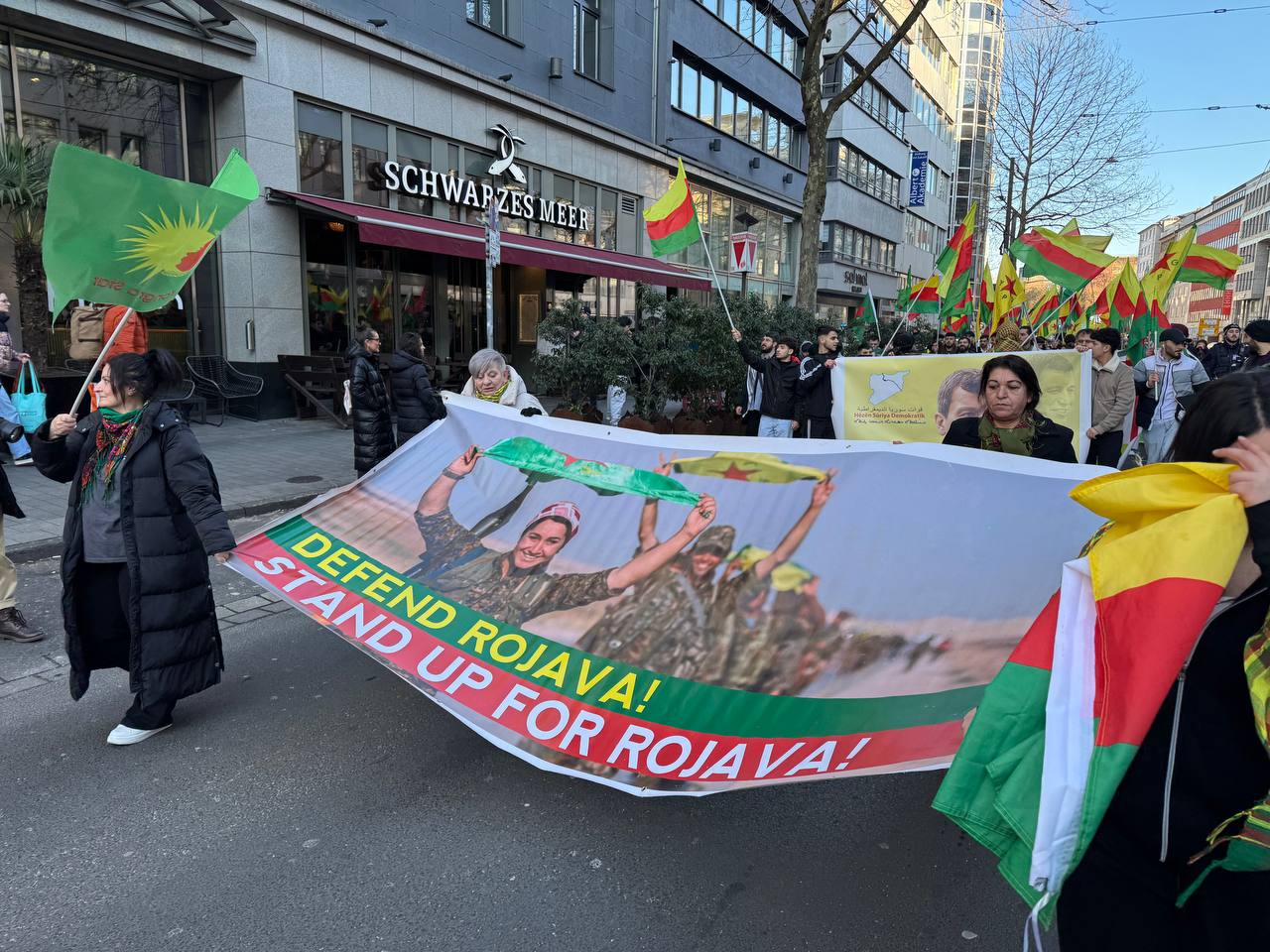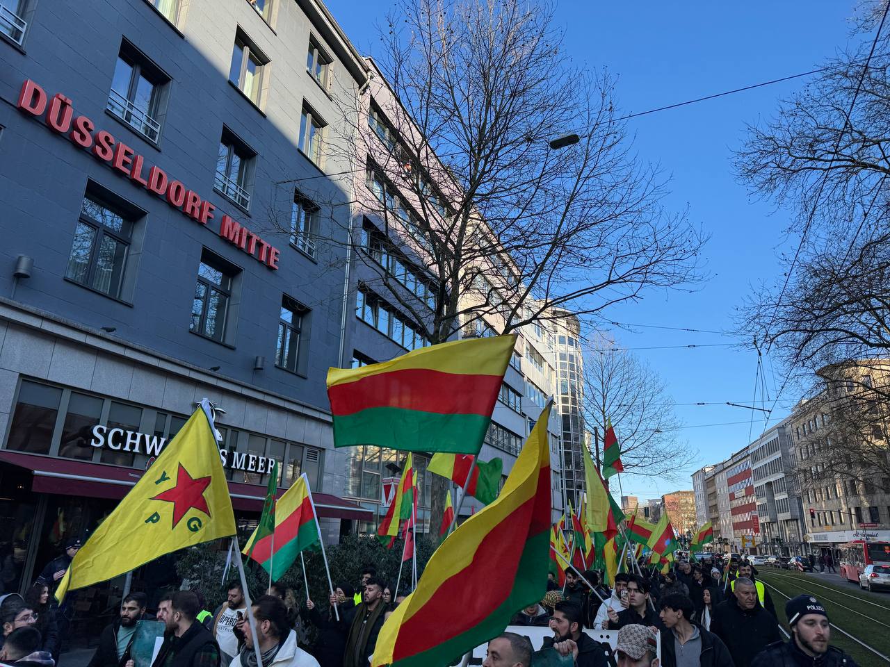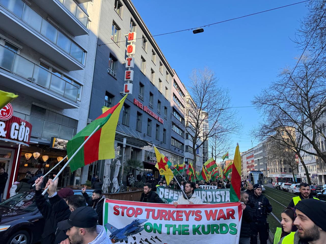 DÜSSELDORF- Tevgera Ciwanên Şoreşger (TCŞ) üyeleri, Rojava’ya yönelik işgal saldırıları ve Tişrîn Barajı direnişine destek veren sivillerin katledilmesini protesto etmek amacıyla Almanya’nın Düsseldorf kentinde bir yürüyüş düzenledi.