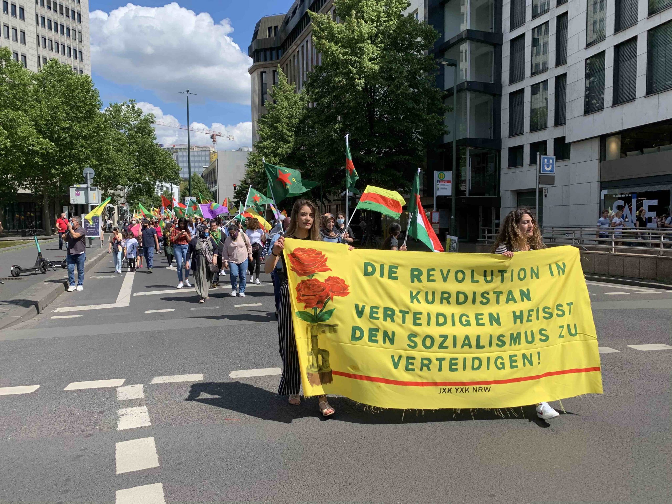 HABER MERKEZİ – NRW Eyaleti’nin başkenti Düsseldorf’ta NRW’de yaşayan Kürdistanlıların katılımı ile düzenlenen yürüyüş Alman Sendikalar Konfederasyonu (DGB) eyalet binası önünde başladı.