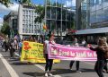 Yürüyüşe Avrupa Kürt gençlik hareketleri Tevgera Ciwanên Şoreşger ve Jinên Ciwan ên Azad’ın yanı sıra AGİF, Frauen Kollektiv, Komünistische Frauen, Defend Rojava, Antifa International, Asuri-Süryani Hareketi, Internationale Jugend ve Mezopotamya İnançlar Birliği sembolleriyle katıldı.