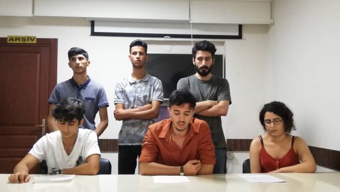 EDENE – Özgür Lise ve Kaldıraç dergileri, okurlarına dönük faşist polis baskısı ve ajanlaştırma dayatmasına tepki gösterdi. İnsan Hakları Derneği (İHD) Adana Şubesi binasında yapılan açıklamada konuşan Kaldıraç okuru Diyar Gök, okurlarının faşist polisler tarafından korkutulmaya ve ajanlaştırılmaya çalışıldığını ve okul ile KYK yurtlarında taciz edildiklerine yer verdi. Gök, “Fiziki takiplerle okurlarımızı aileleri üzerinden tehdit etme girişimleri ve ‘burs verelim, destek olalım’ gibi vaatlerle okurlarımızı bizlerden uzak durmaları konusunda tembihlemişlerdir” dedi.