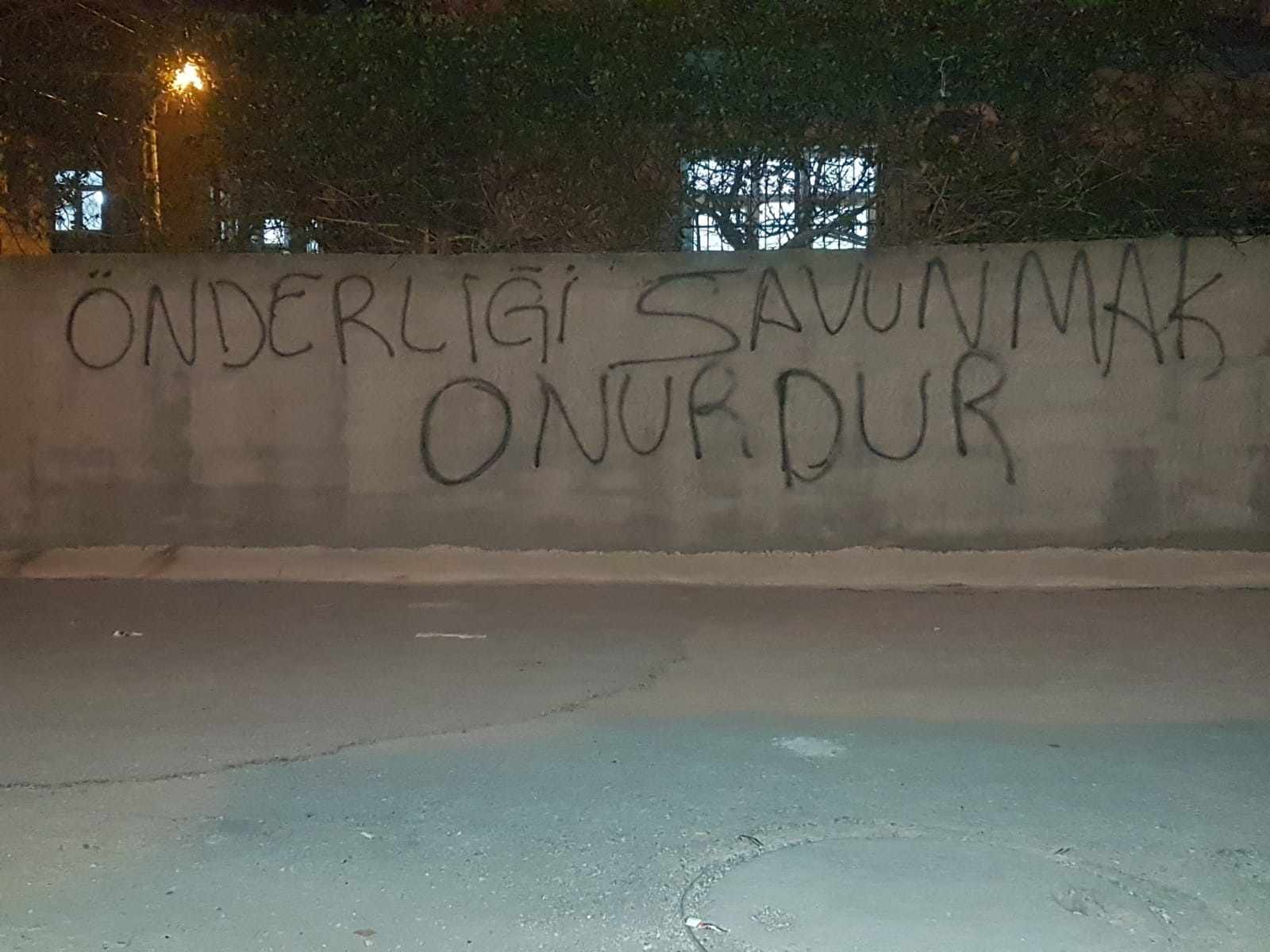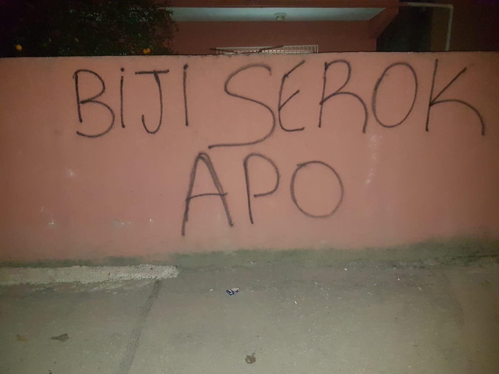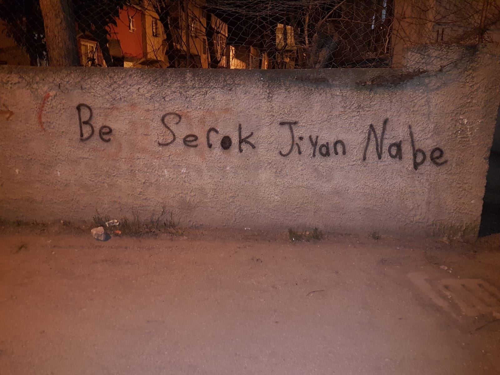 Gençlik İnisiyatifi, ” Gençlik Apo’nun Fedaisidir”, “Gençlik Dağlara, Özgür Vatana”, “Önderliği Savunmak Onurdur” “Bê Serok Jiyan Nabe” ve “Bijî Serok Apo” yazılamalarını yazdı. İnisiyatif ayrıca ” 15 Şubat Komplosunu Kınıyoruz” yazılı bir pankart astı.