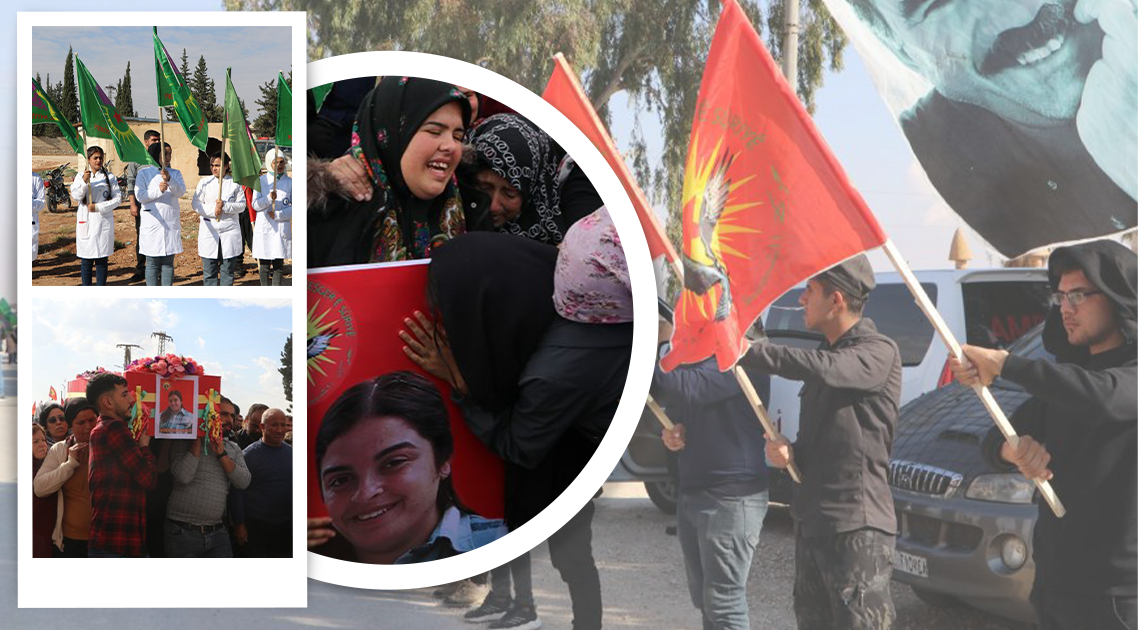 ŞEHBA – Efrîn-Şehba Kantonu’nda yüzlerce kişi, Suriye Devrimci Gençlik Hareketi Yönetimi’nden şehit Ronahî Amanos’un cenazesini karşıladı.