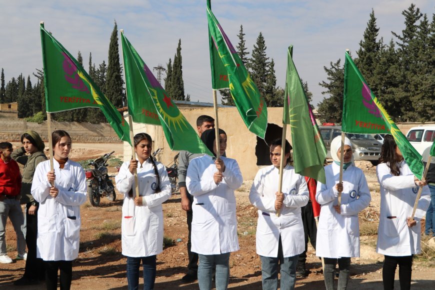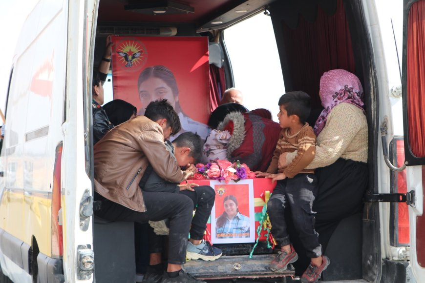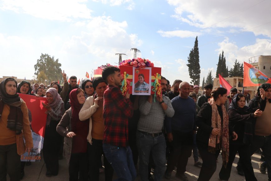 Cizre Kantonu’nun Qamişlo kentinde geçirdiği kalp krizi sonucu şehit düşen Suriye Devrimci Gençlik Hareketi Yönetimi’nden Ronahî Amanos (Hêvîn Hisên), memleketi Efrîn-Şehba Kantonu’na uğurlandı.