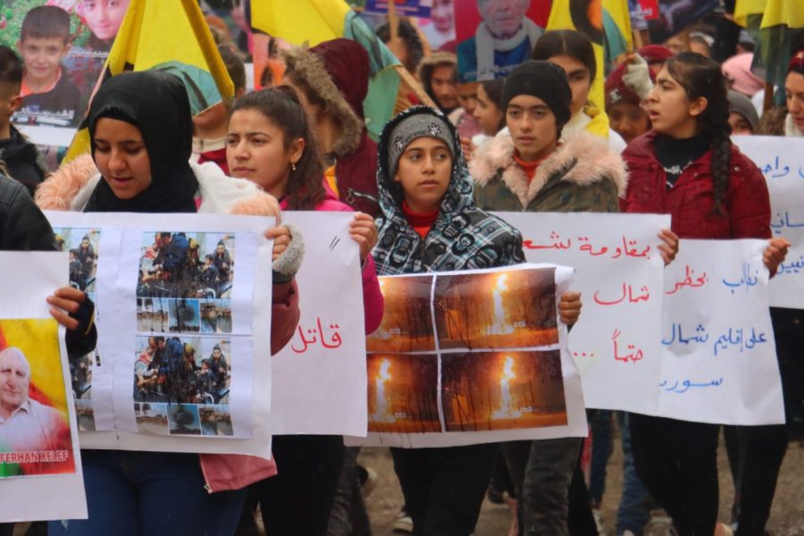 Yüzlerce Efrîn ve Şehbalı, işgalci Türk devletinin Kuzey ve Doğu Suriye’ye yönelik devam eden saldırılarını kınamak için sokaklara çıktı.