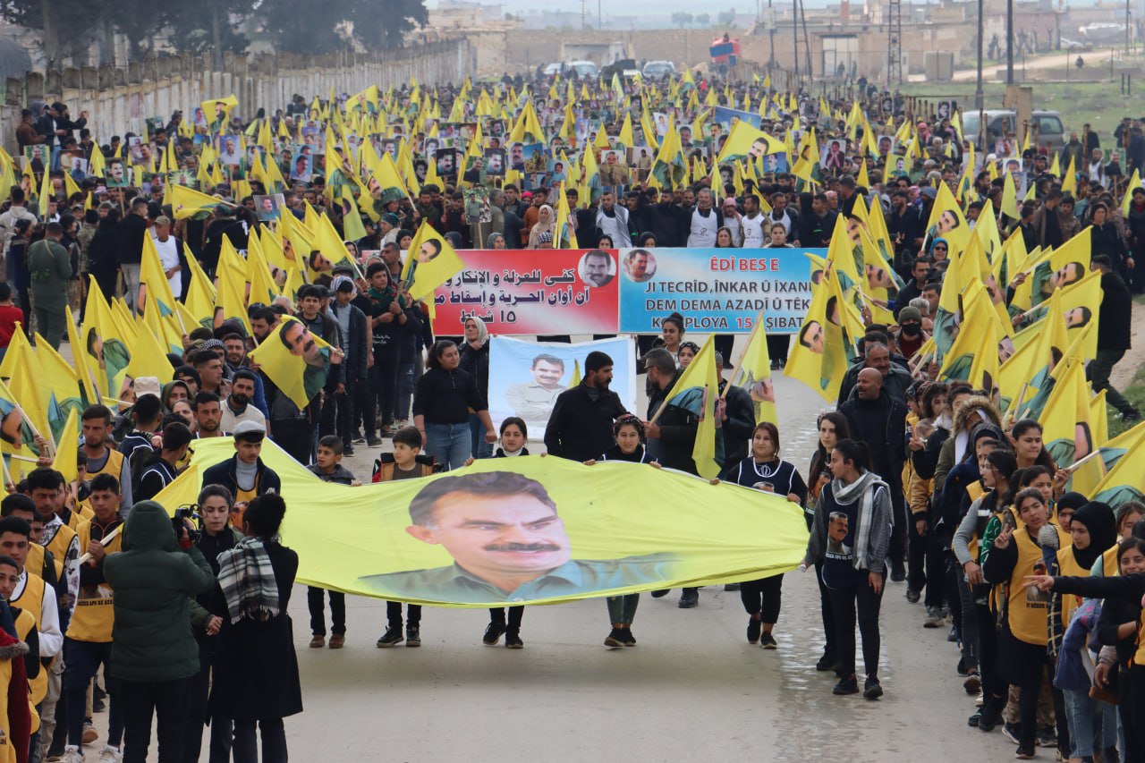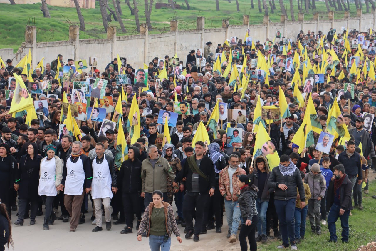 ŞEHBA- Efrin ve Şehba kantonlarında on binlerce kişi Fafin ilçesinde toplanarak, Önder Apo’ya Yönelik Uluslararası Komployu 25’inci yıl dönümünde kınadı.