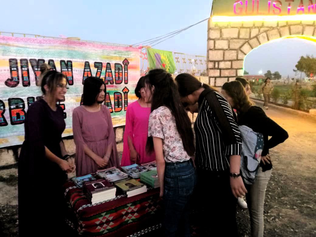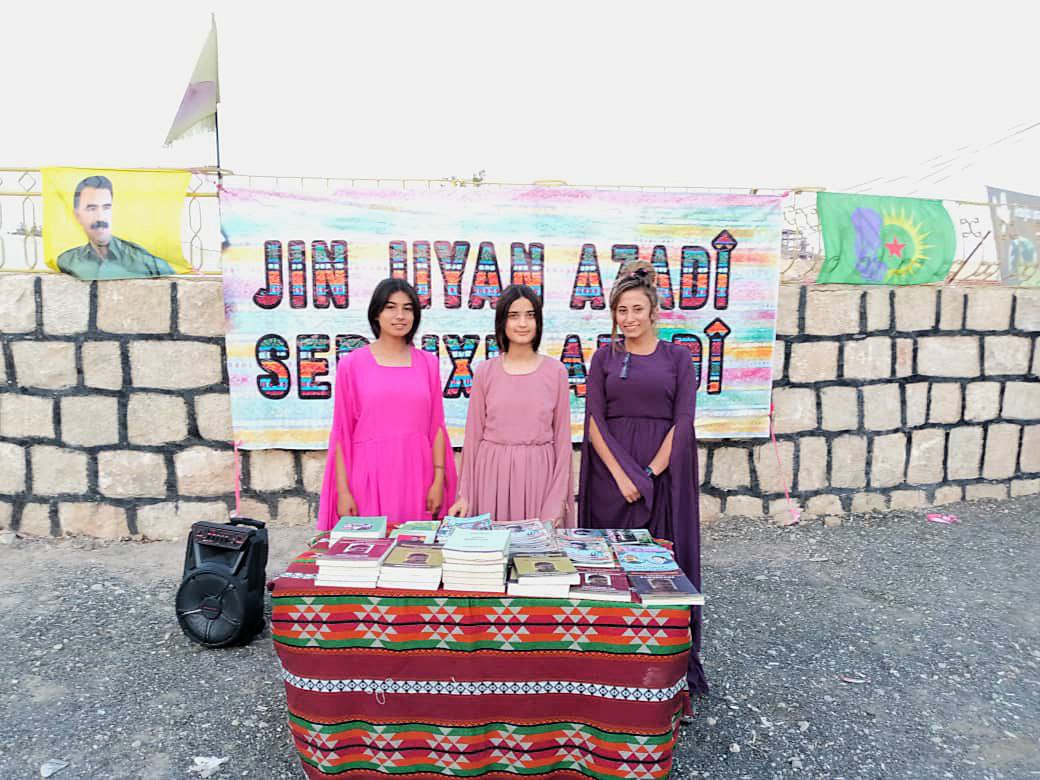 ŞEHBA- Komalên Jinên Cİwan tarafından başlatılmış olan “Jin Jiyan Azadî Serbixe Azadî” kampanyası çerçevesinde Êfrin Kantonu Genç Kadınlar Birliği üyeleri başlatılmış olan “Önder Apoya Özgürlük Kürt Sorununa Çözüm” hamlesini selamlamak Önder Apo’nun fikir ve felsefesini yaymak adına Önderlik kitaplarından oluşan bir stant açtı.
