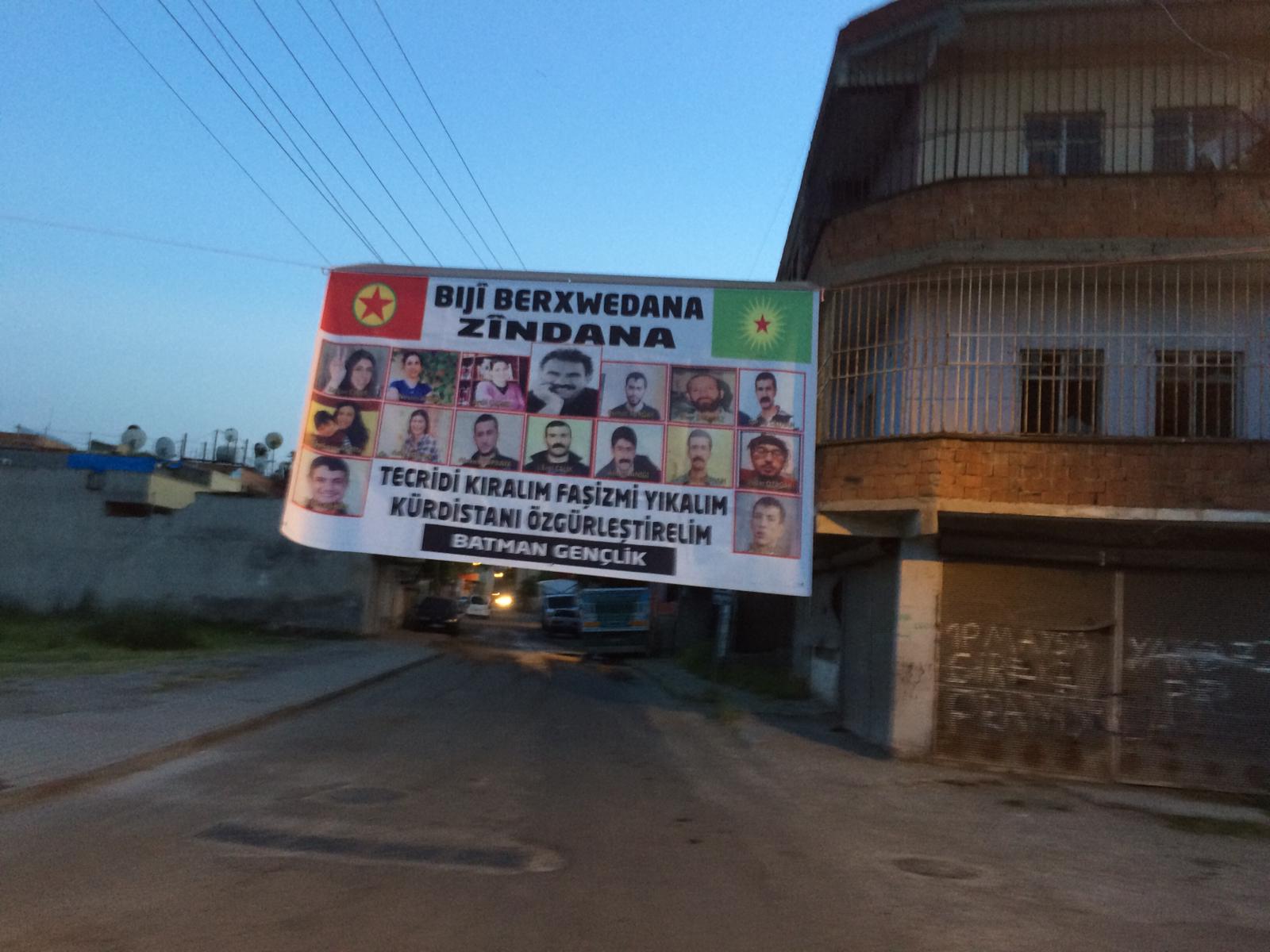 Êlîh gençliği ölüm orucu ve açlık grevi direnişçilerine dikkat çekmek amacıyla 19 Mayıs Mahallesinde tecride karşı 19 gündür ölüm orucunda ki direnişçilerinin olduğu “Bijî Berxwedana Zindana” pankart astı.