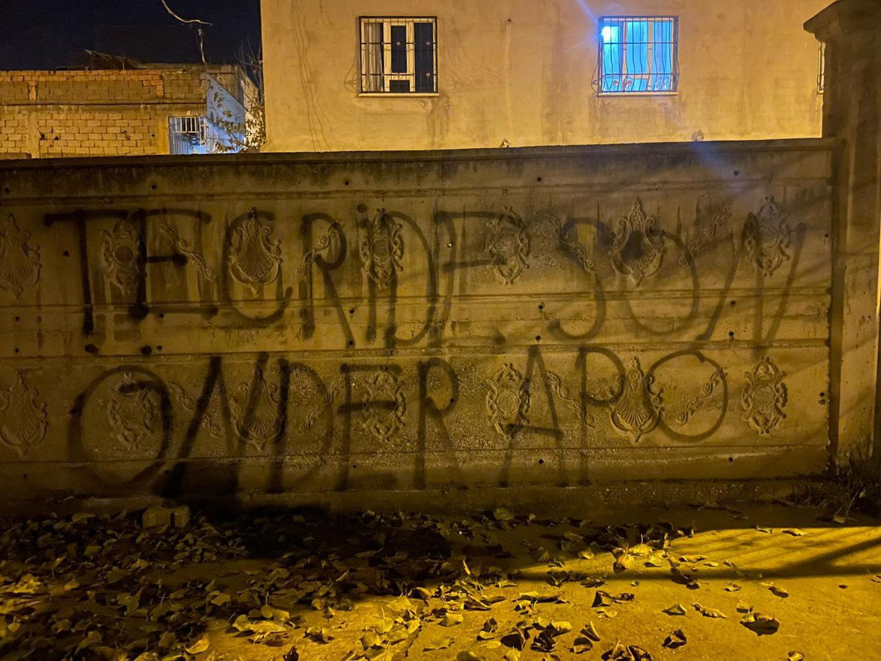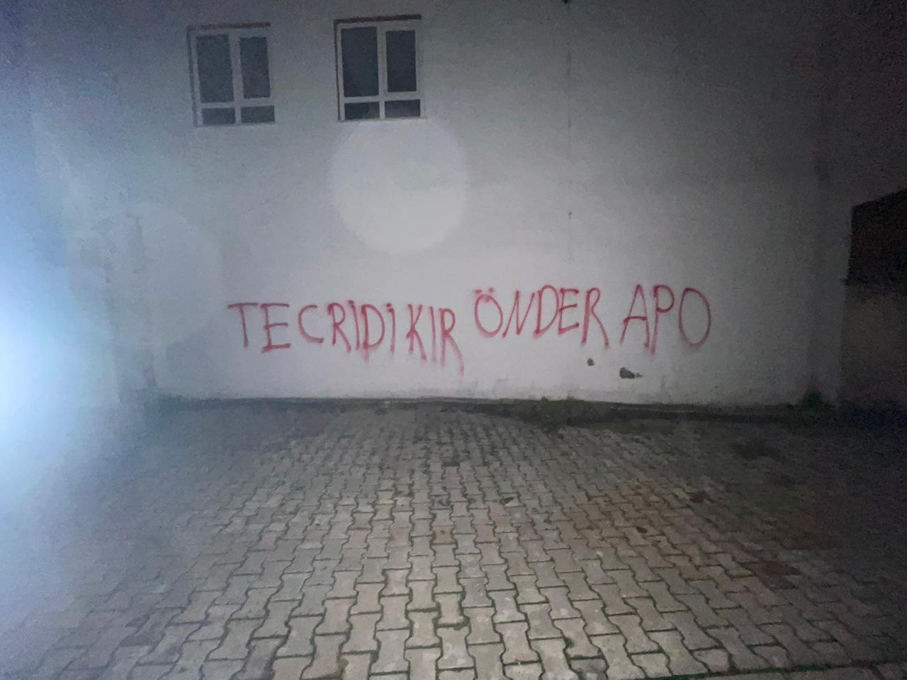 ELÎH- Elîh’te Yurtsever Gençlik tarafından Önder Apo’ya yönelik yürütülen ağırlaştırılmış tecrit politikalarına dikkat çekmek amacıyla duvarlara yazılama eylemi yapıldı.