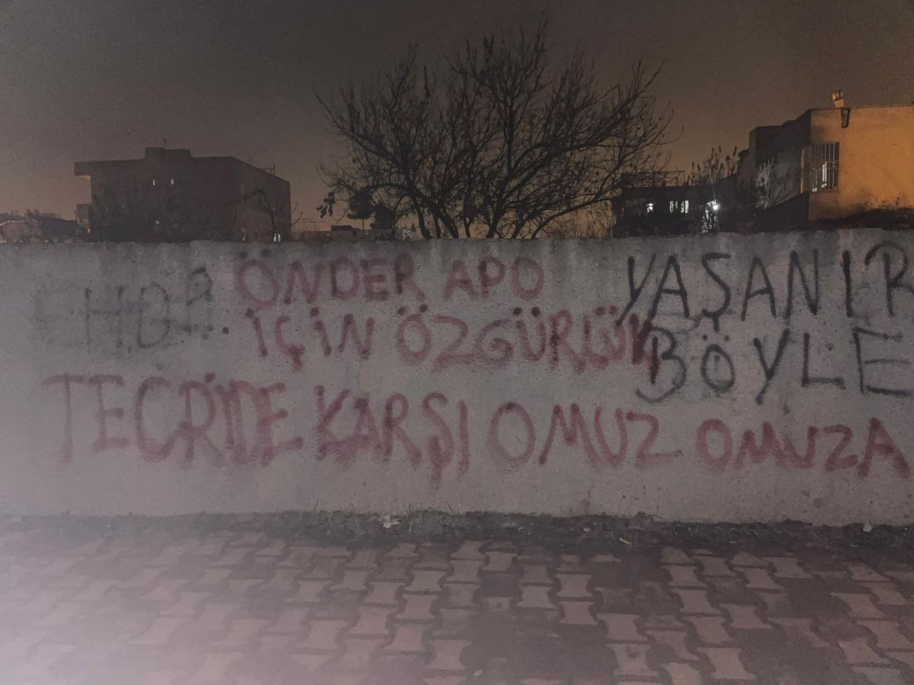 Gençler tarafından bir çok noktada duvara “Tecridi Kır” Faşizmi Parçala” Tecride Son” “Önder Apo İçin özgürlük” ve Tecride Karşı Omuz Omuza” yazıldı.