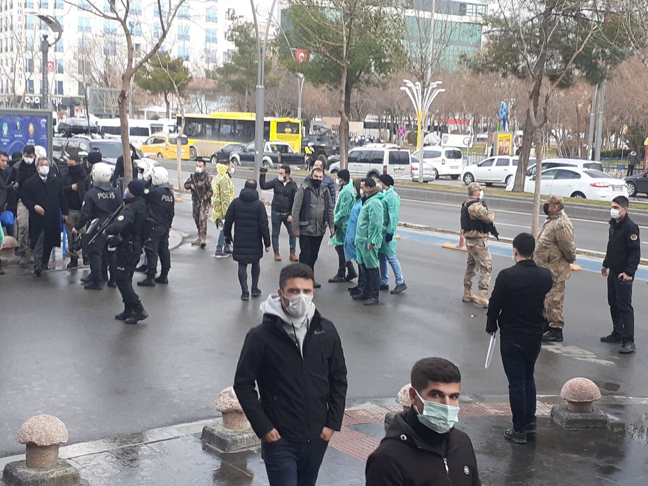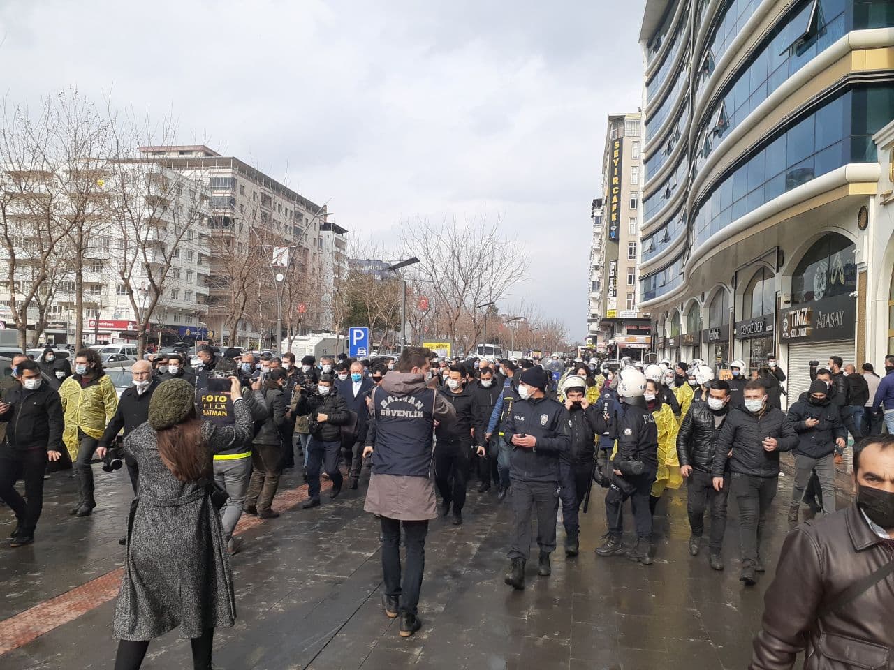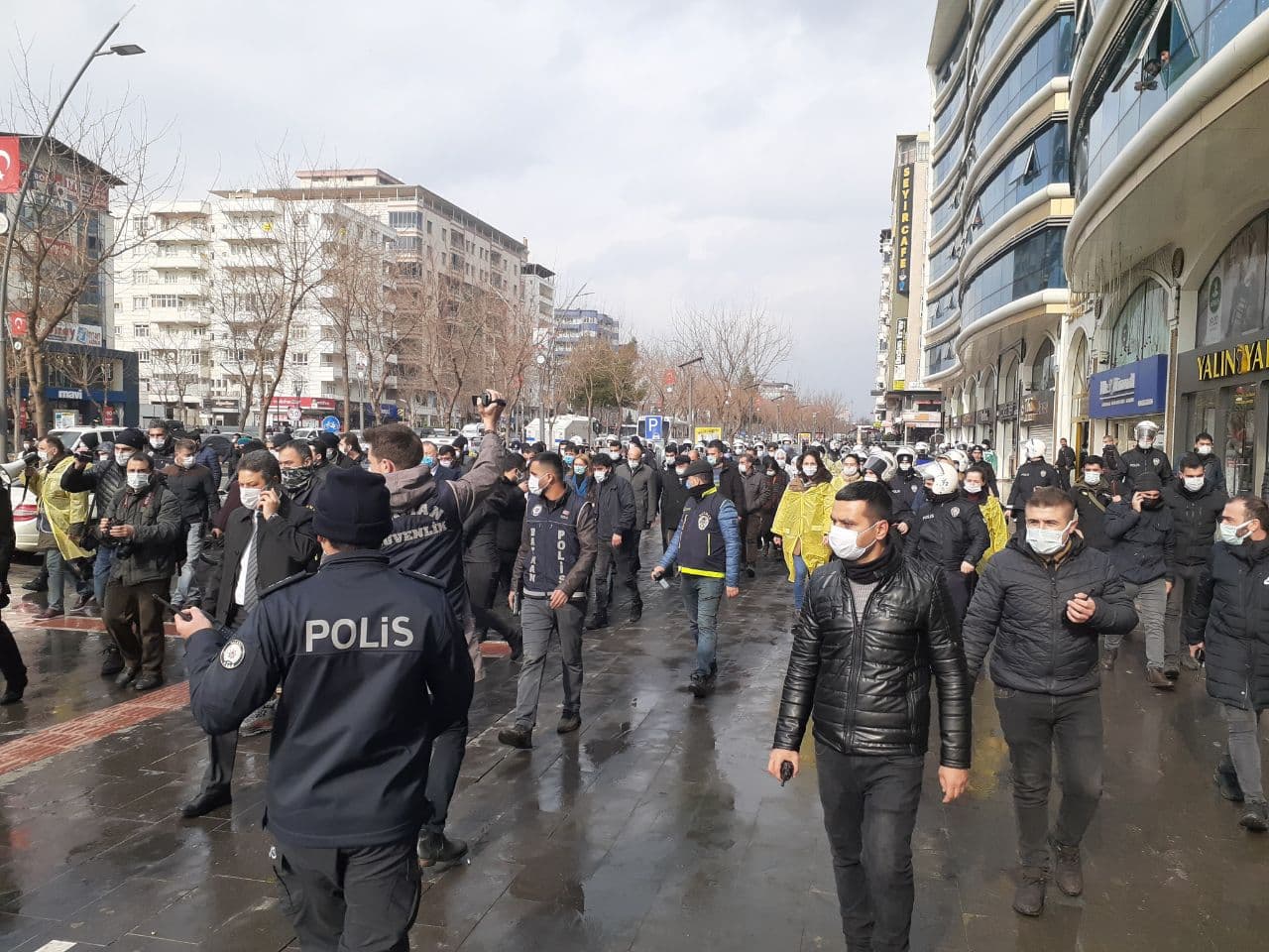Saldırıya “Bijî berxwedana zindana”, “Baskılar bizi yıldıramaz”, “PKK halktır halk burada” sloganları ile karşılık veren kitle Diyarbakır Caddesi’nde yürüyüşünü sürdürdüğü sırada yeniden saldırıya uğradı. Çok sayıda kişi darp edildi. Yerel kayankalardan alınan bilgilere göre ise en az 10 kişi gözaltına alındı.