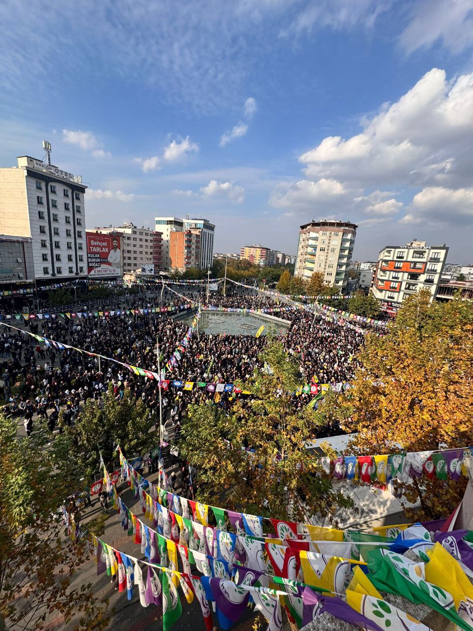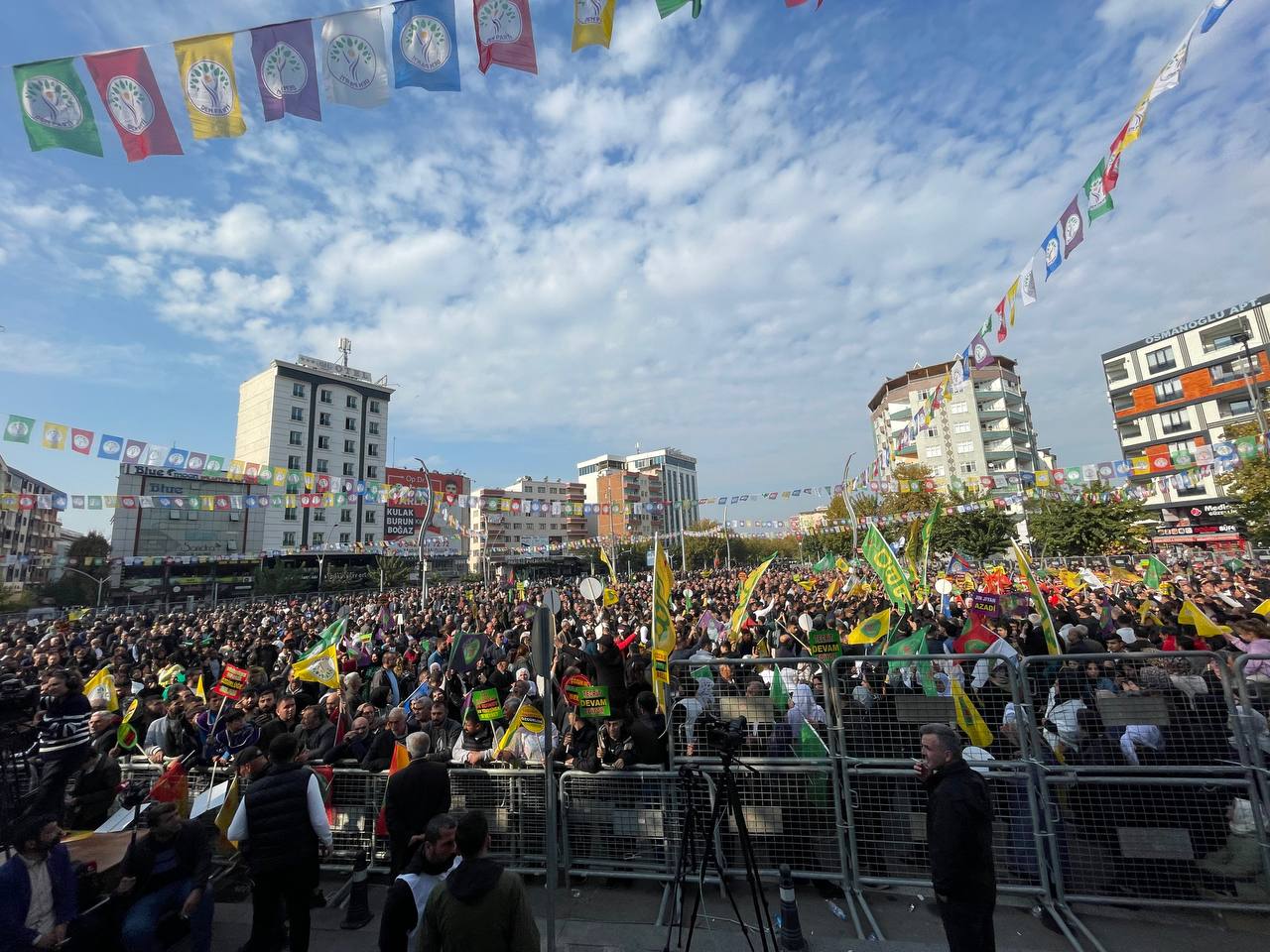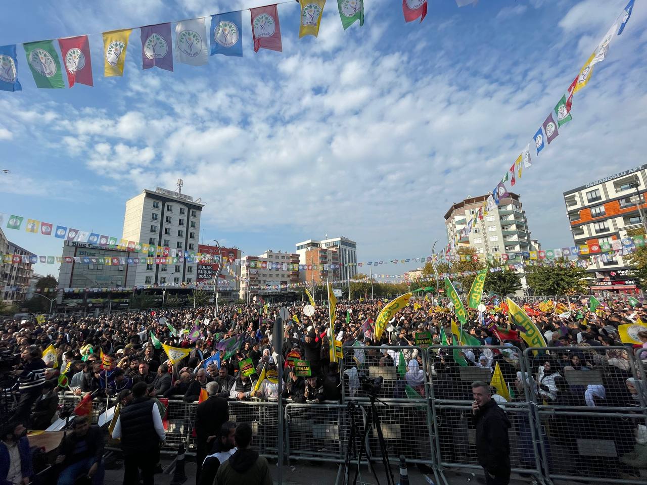 Birçok kentten de mitinge yoğun katılım gözlemlendi. Diyarbakır Caddesi ve Hasankeyf Kavşağı’nda bir araya gelen yurttaşlar, uzun bir süre halaya durdu. Ardından yürüyüşle miting alanına giriş yaptı. Alana gelenler, “Bu bir halk ikazıdır; belediyeleri boşaltın”, “Kayyıma geçit yok, kayyım talandır”, “Eşbaşkanlık mor çizgimizdir” ve “Çözüm de muhatap da belli” yazılı dövizler taşıdı.