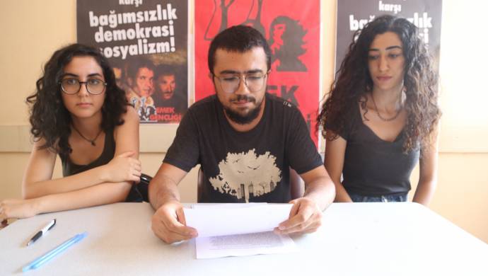 ADANA – Adana Emek Gençliği üyeleri üzerlerindeki işgalci Türk polis baskısına dikkat çekmek için basın toplantısı gerçekleştirdi. Emek Partisi (EMEP) Adana İl binasında gerçekleştirilen açıklamada Emek Gençliği üyelerinin önünü kesen sivil polislerin tehditlerine tepki gösterildi. Emek Gençliği’nin kurulduğu 1996 yılından bugüne bağımsızlık, demokrasi ve sosyalizm mücadelesi verdiğine dikkat çeken Emek Gençliği İl yöneticisi Mesut Baylav, parasız, bilimsel, anadilinde eğitim, çocuk işçiliğinin yasaklanması, gençlerin ölümü karşısında barış taleplerinin ve mücadelelerinin engellenmek istendiğini söyledi.