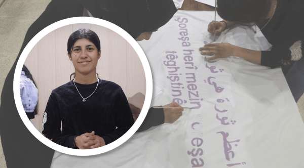 REQA – Genç kadın öğrenciler yarın yapılacak olan 8 Mart Dünya Kadınlar Günü festivali için hazırlıklara başladı. Genç kadınlar bir araya gelerek Önder APO’nun “En Büyük Devrim Anlamaktır” sözünü el yazısıyla bir pankarta yazdı.