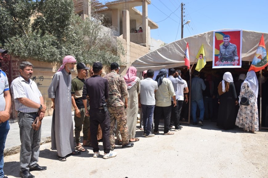 ŞEDADÊ- Cizîr Kantonu’nun Şedadê kentinden yüzlerce yurttaş, HPG gerillası Şehit Dilgeş Ednan’ın (Hemze Mihemed Hac Seqir) ailesine taziye ziyaretinde bulundu. Taziye çadırı, şehidin ailesinin Şedadê’deki evinin önünde kuruldu.