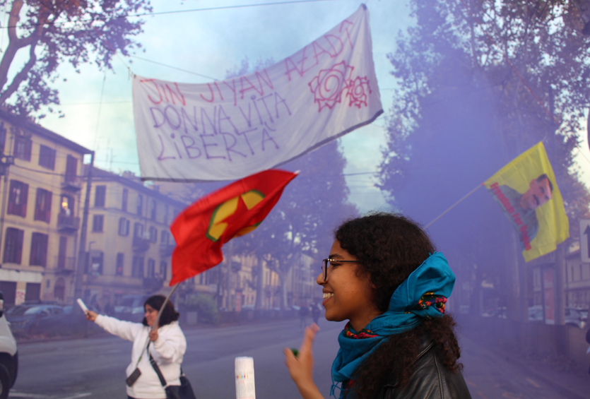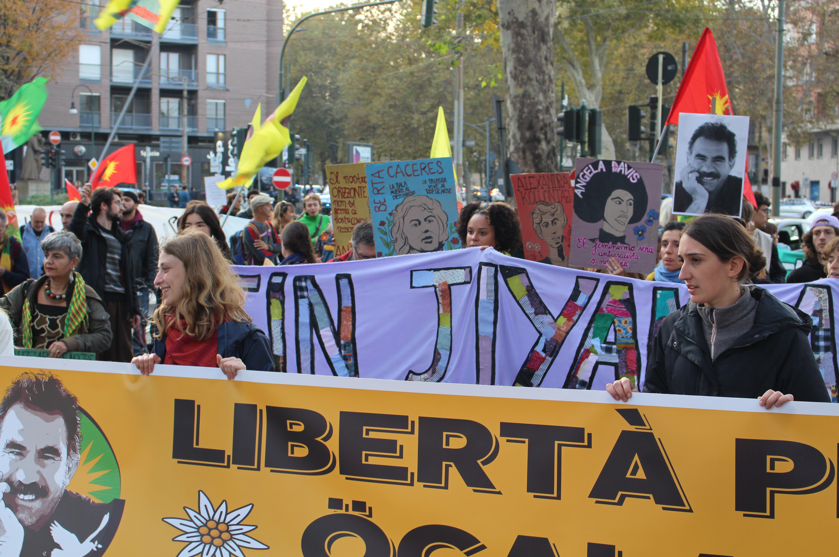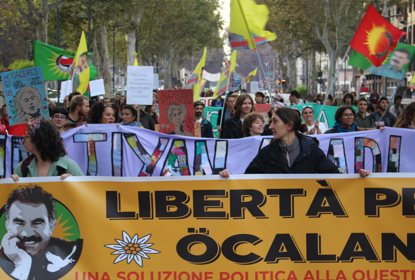 TORİNO – ‘Önder APO’ya Özgürlük Kürt Sorununa Çözüm’ hamlesi kapsamında, enternasyonalist genç kadınlar İtalya’nın Torino kentinde bir yürüyüş gerçekleştirdi. Genç kadınlar yürüyüşlerinde Önder APO’nun direnişini selamladı, yine gençler tarafından 13 Ekim’de Amed mitinginde direnen Kürt halkı selamlandı.