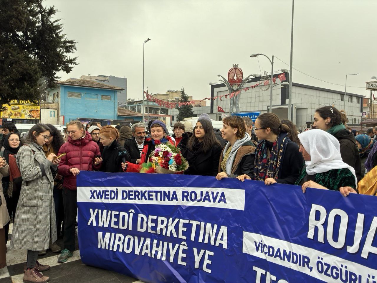 RIHA – Avrupa’nın birçok ülkesinden bir araya gelerek Rojava direnişi ve halkıyla dayanışmak için People’s Caravan (Halkların Karavanı) adıyla yola çıkan Enternasyonalist gençler Riha’nın Pirsûs ilçesine ulaştı. Enternasyonalist gençleri halk büyük bir çoşkuyla ve çiçekler ile karşıladı. Heyetin yaptığı açıklama ardından sloganlar ve zılgıtlar ile Pirsûs Dem Parti ilçe binasına geçiş yapıldı.