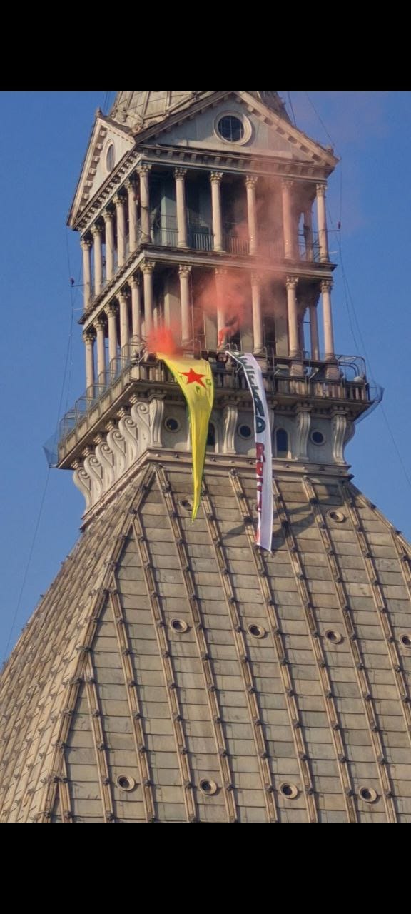Enternasyonalistler Mole Antonelliana Binasına YPG Bayrağı Astı