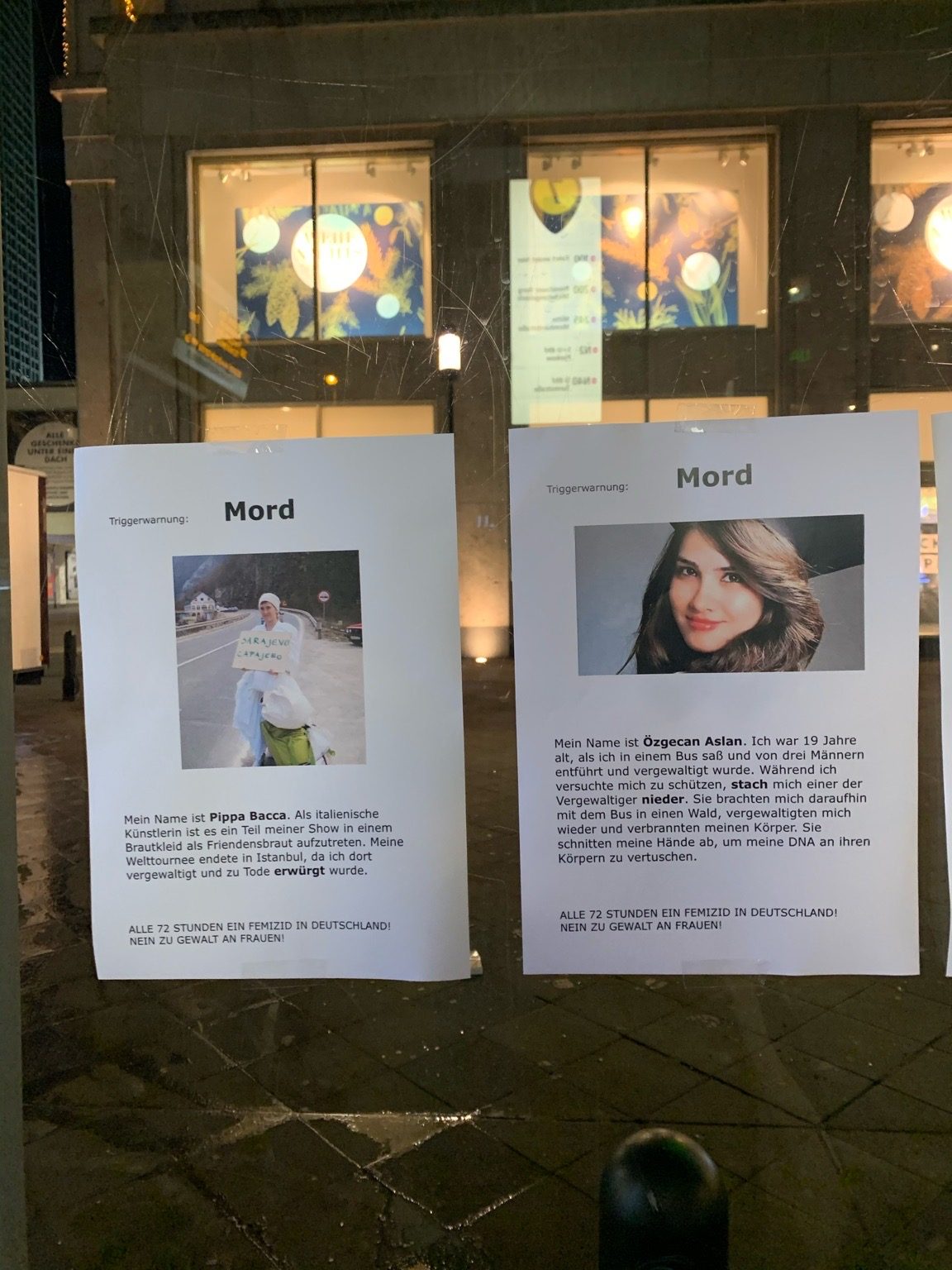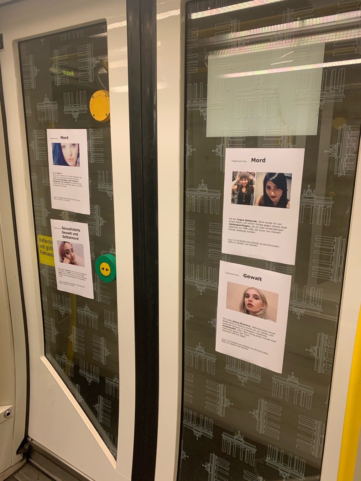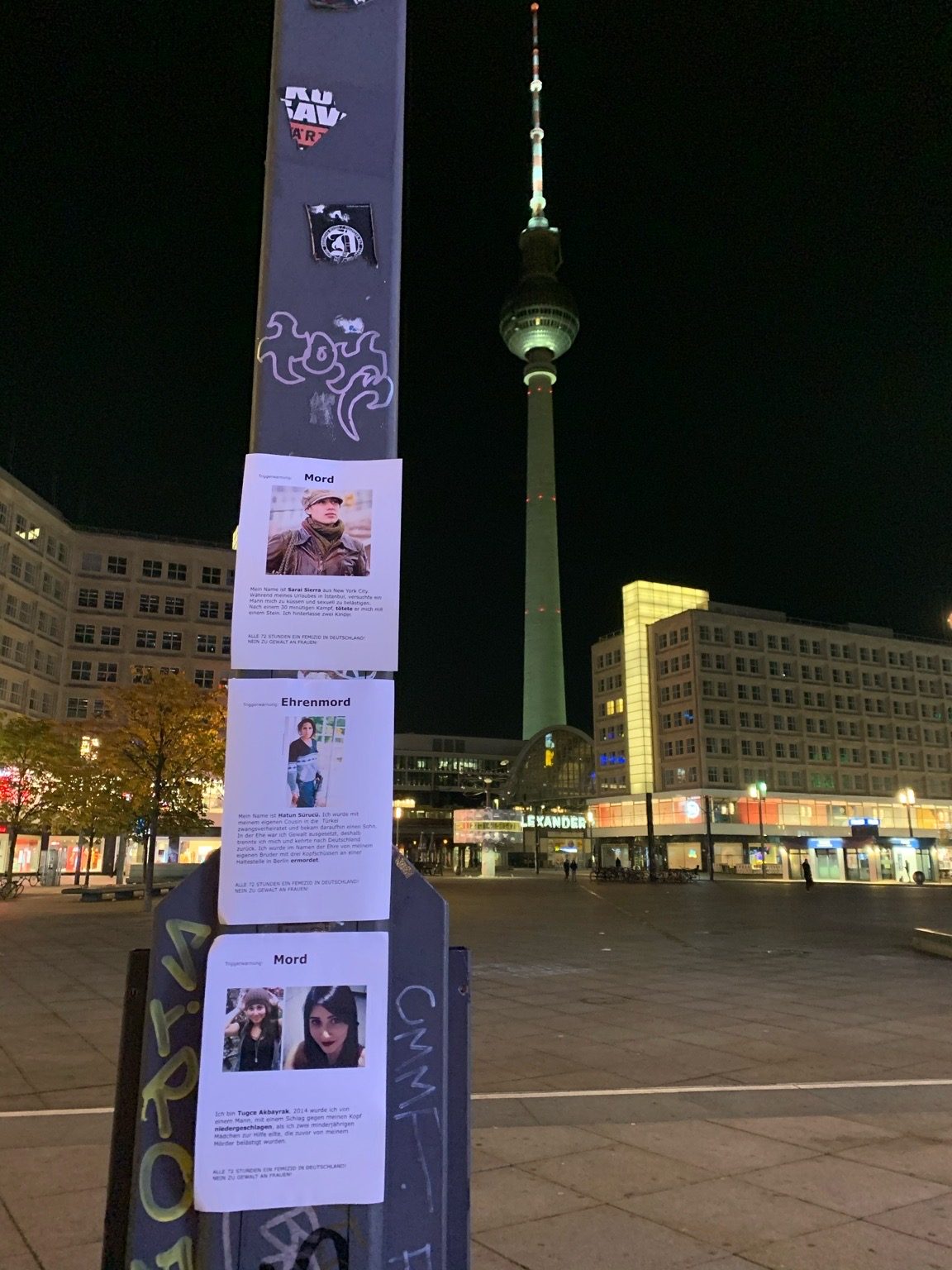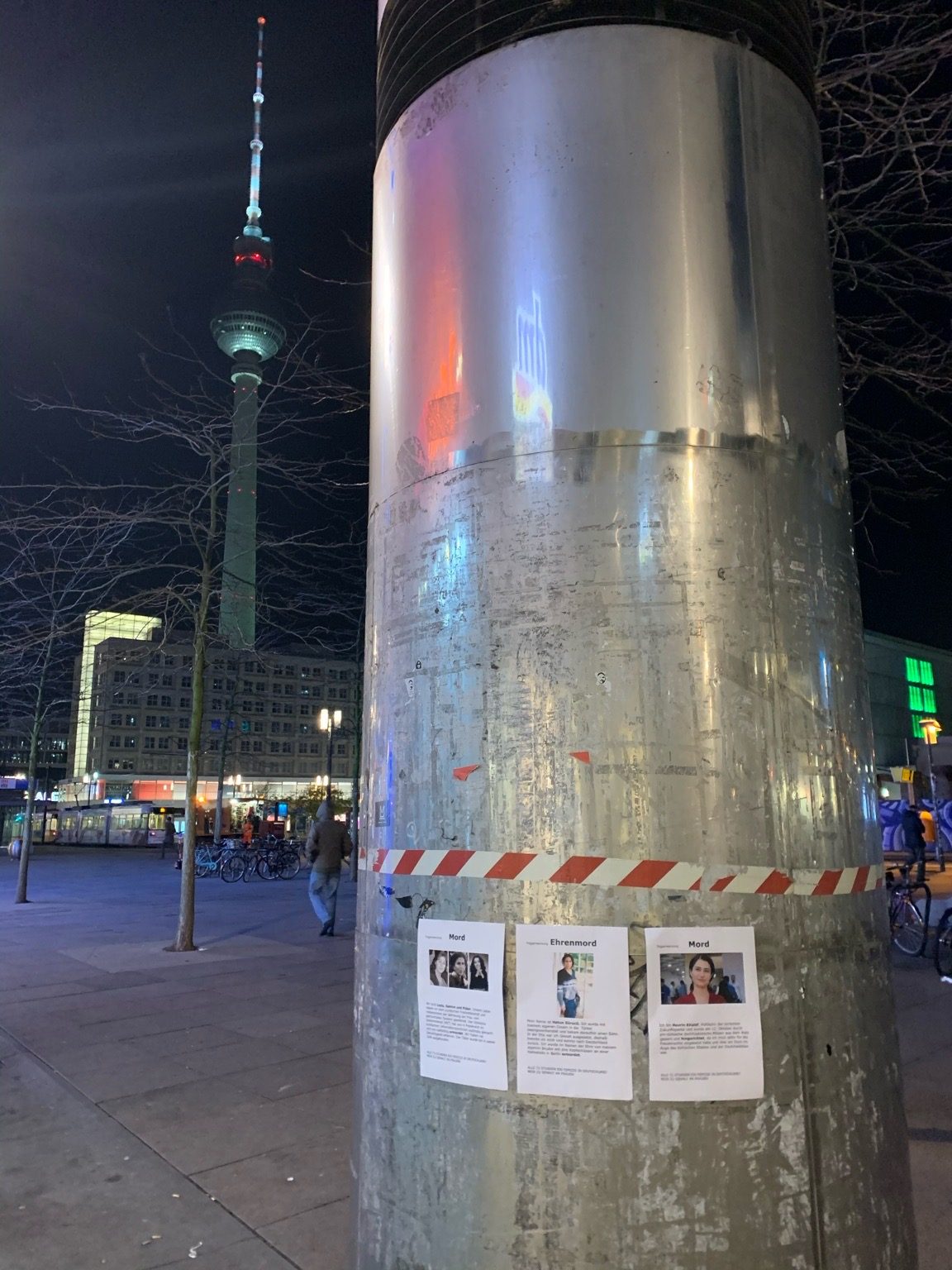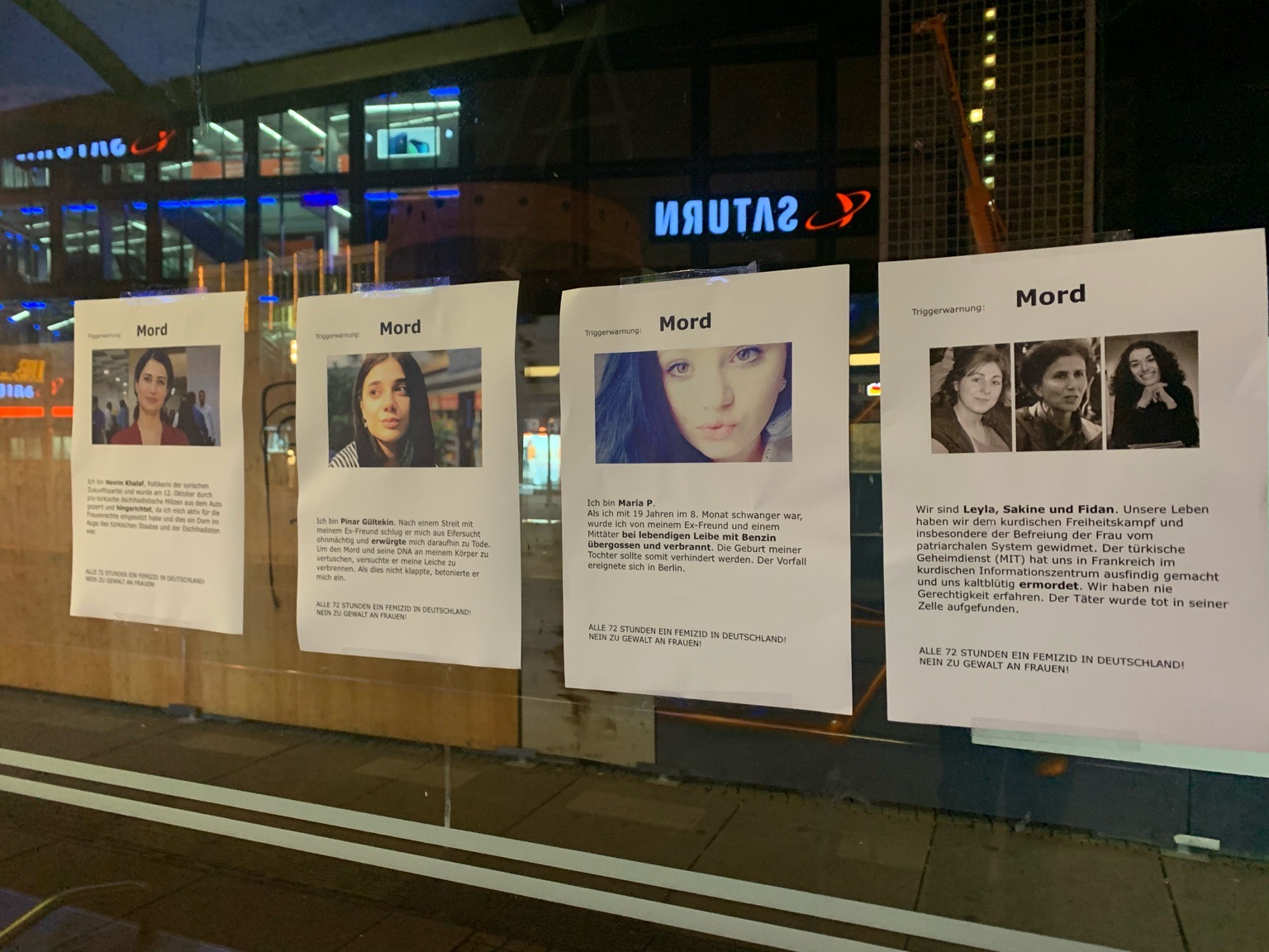 Tevgera Jinên Ciwan ên Têkoşer (Mücadeleci Genç Kadınlar Hareketi) ve Jinên Xwendekar ên Kurdistan (Kürdistanlı Kadın Öğrenciler) aktivistleri Berlin’nin merkezi yerlerine afişleme yaptı. Afişlerde katledilen kadınların yaşam öyküleri yer aldı.