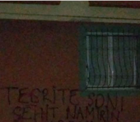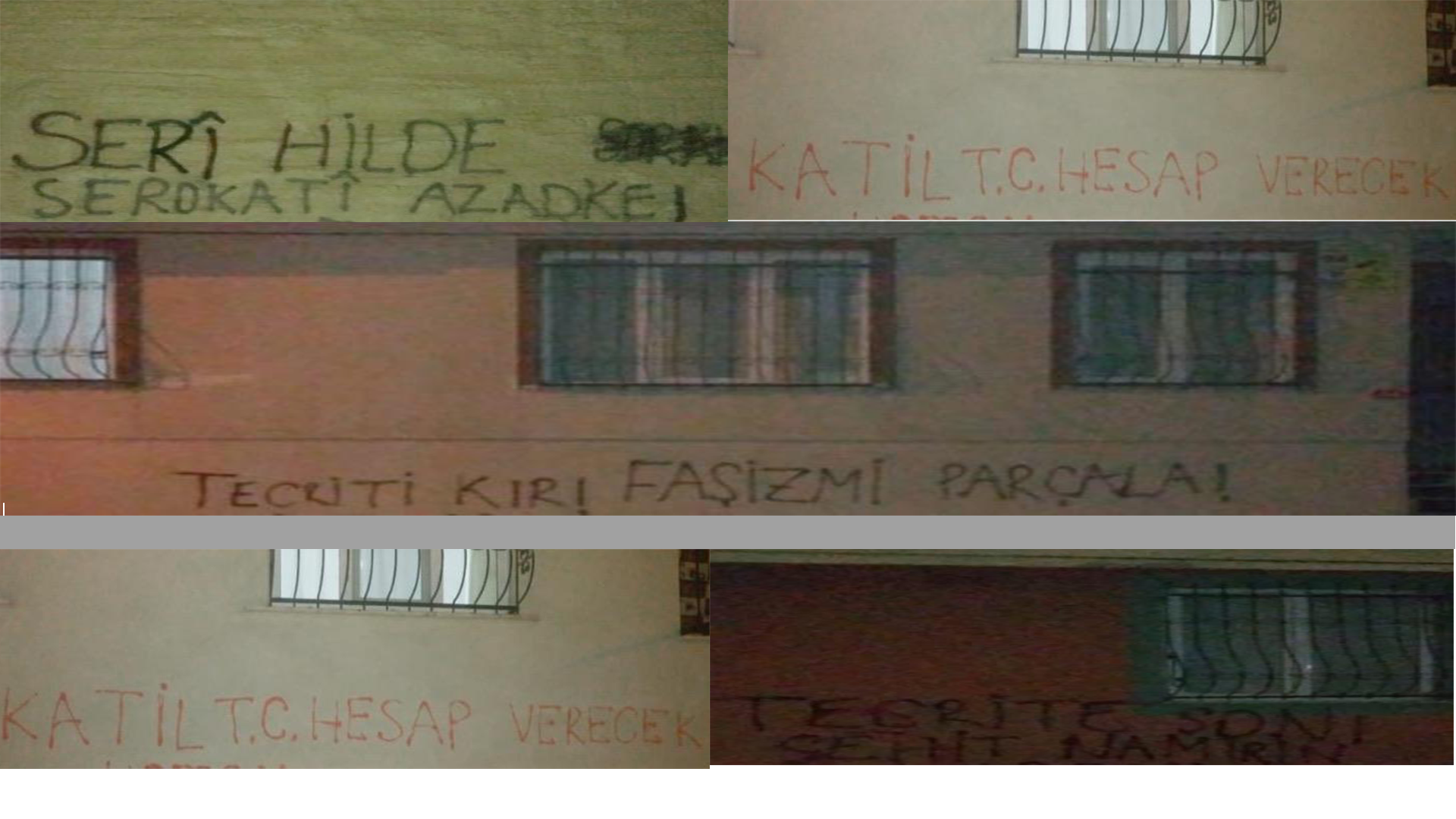 “Tecridi kır Faşizmi parçala, Katil T.C hesap verecek, Serî Hilde Serokati azad bike, Tecrite son, Şehit namırın ” gibi yazılar yazıldı.