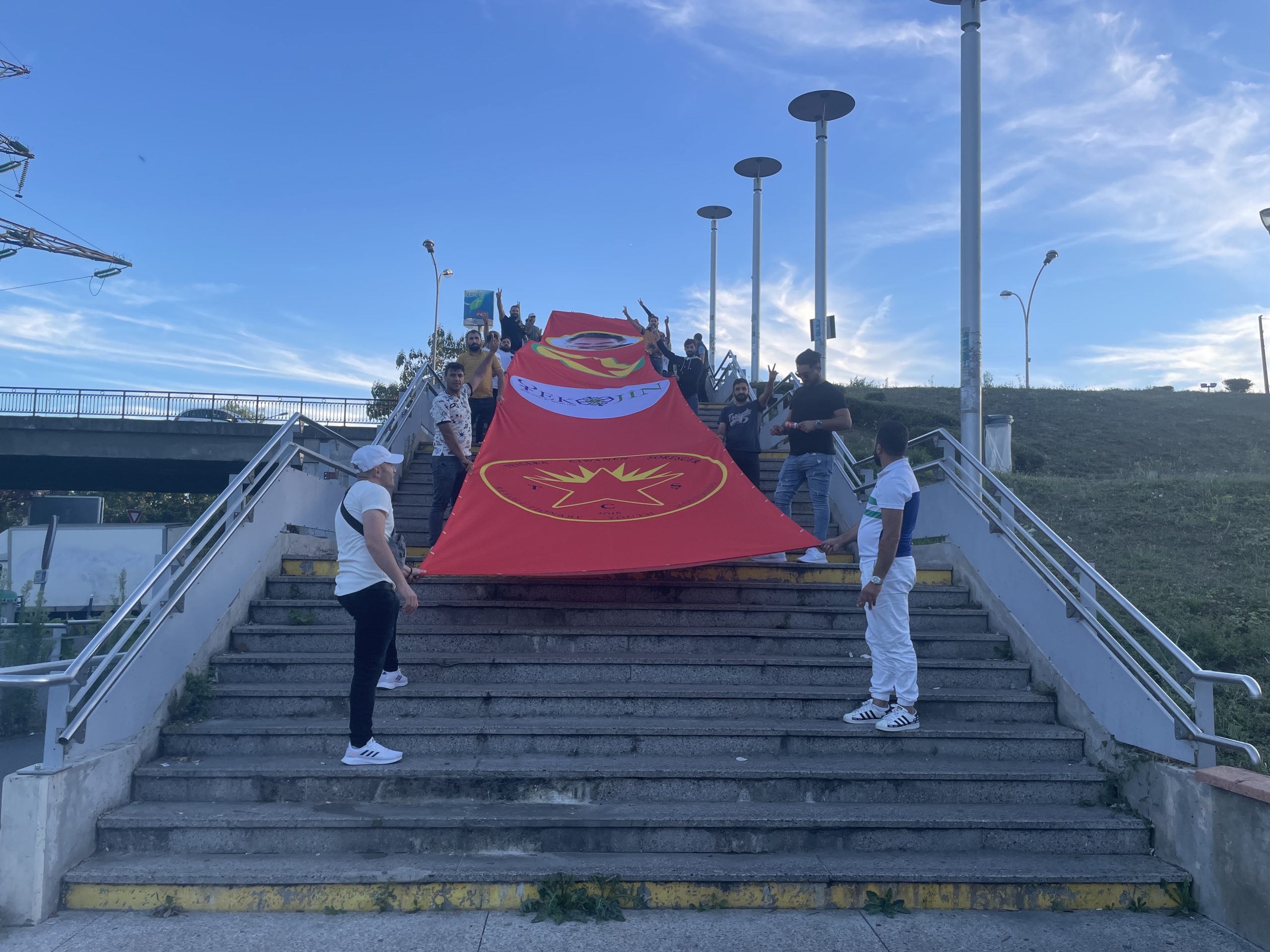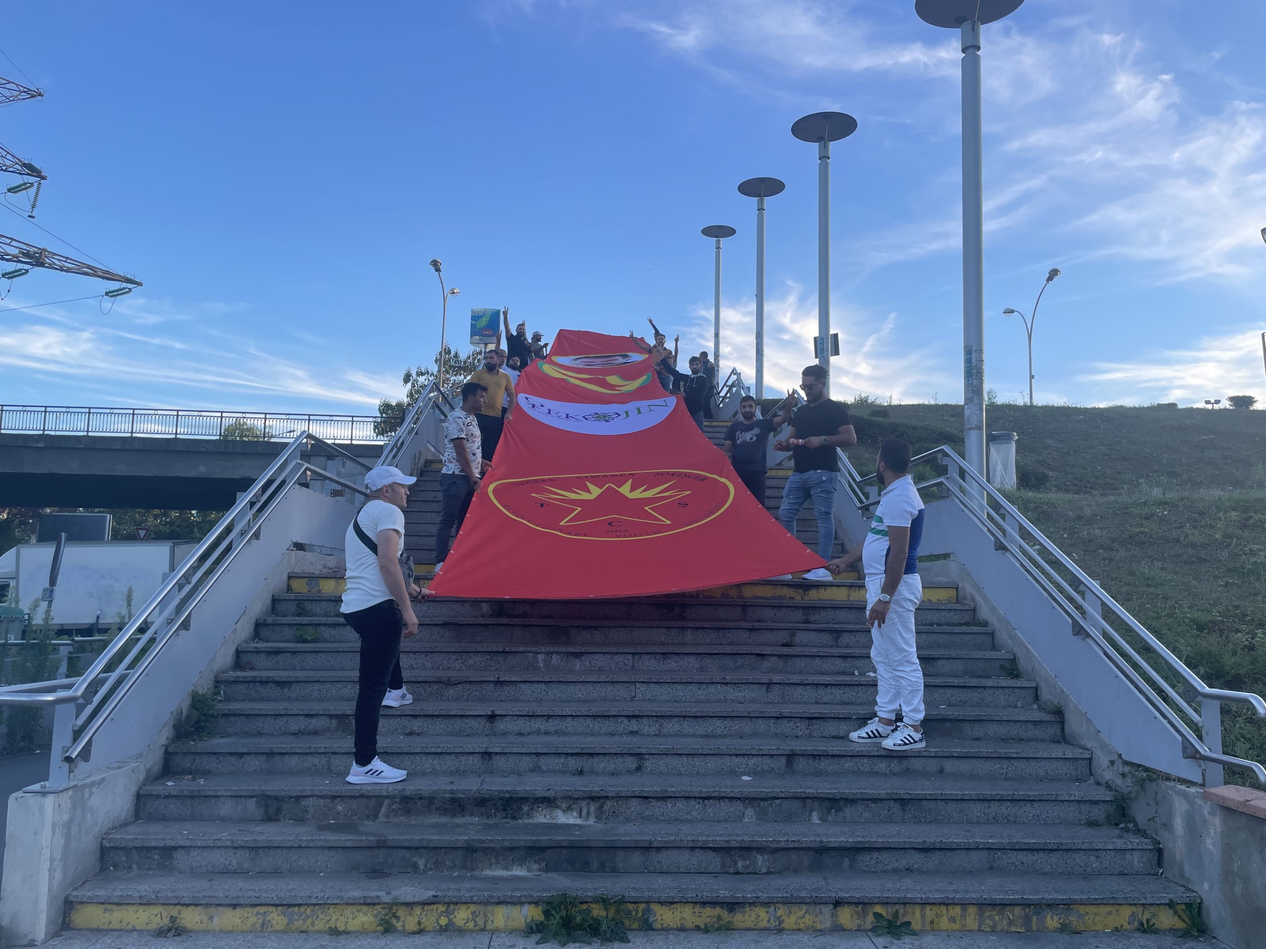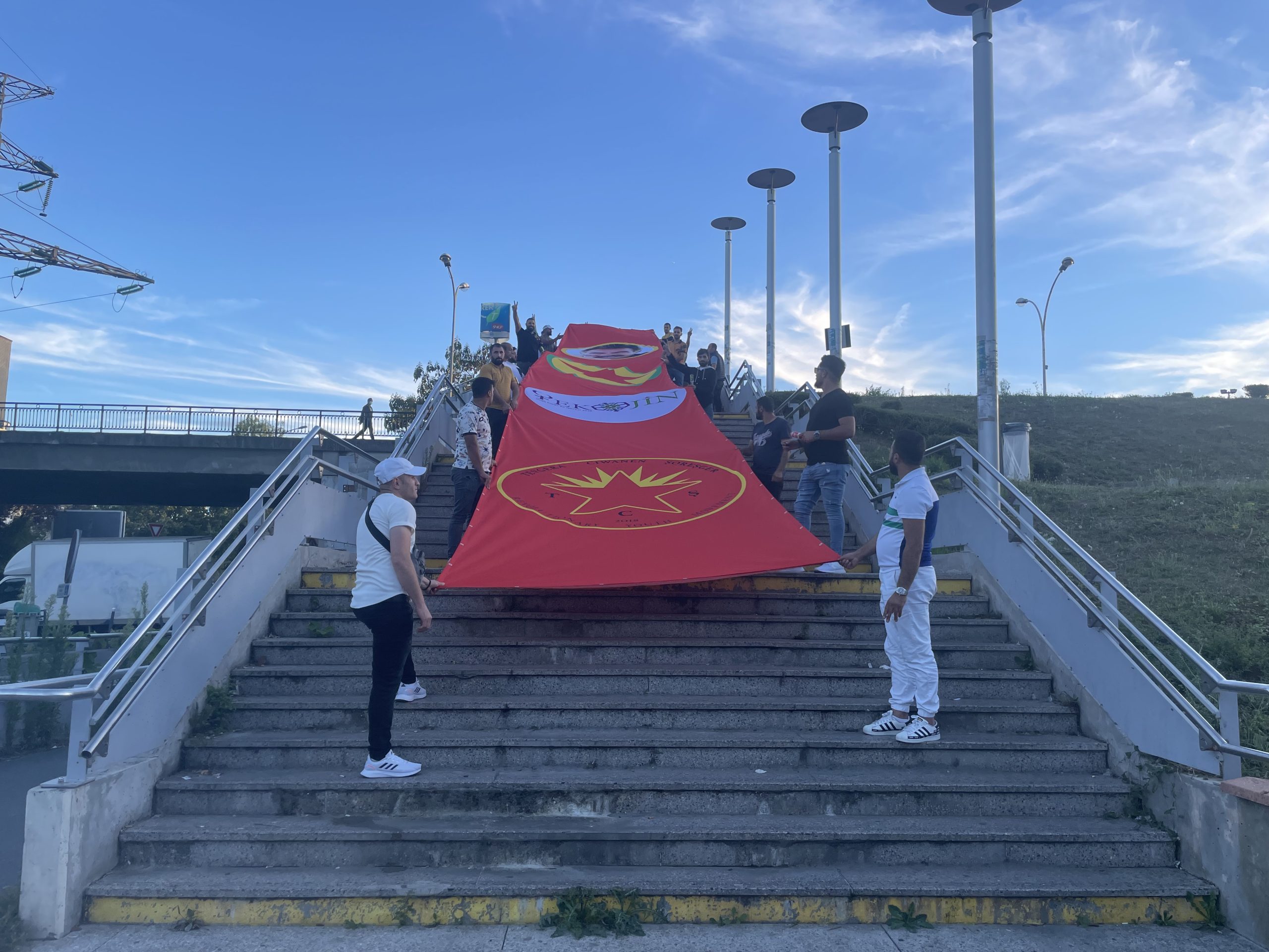Gençler bugün akşam saatlerinde Evry garı önünde eylemlerini gerçekleştirdiler. Önder APO’nun fotoğrafı, PKK, TekoJIN ve TCŞ bayraklarının üstünde olduğu büyük bir Pankart açan gençler havai fişek ve dumanlarla eyleme renk kattılar.
