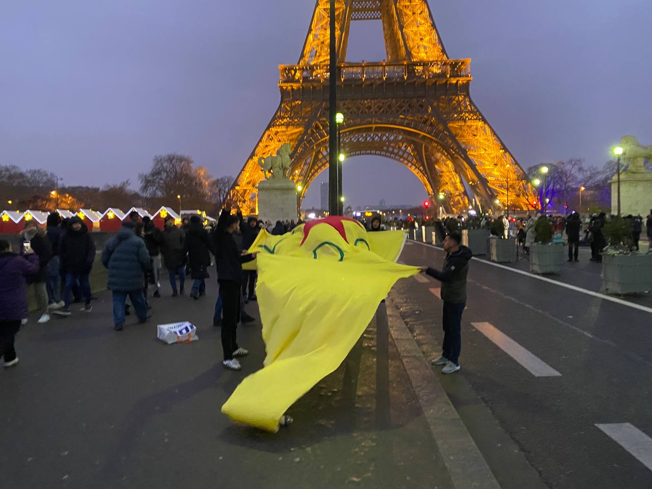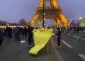 Akşam saatlerinde Fransa’nın başkenti Paris’in simgesi olan Eyfel Kulesi önünde dev bir YPG bayrağı açıldı.
