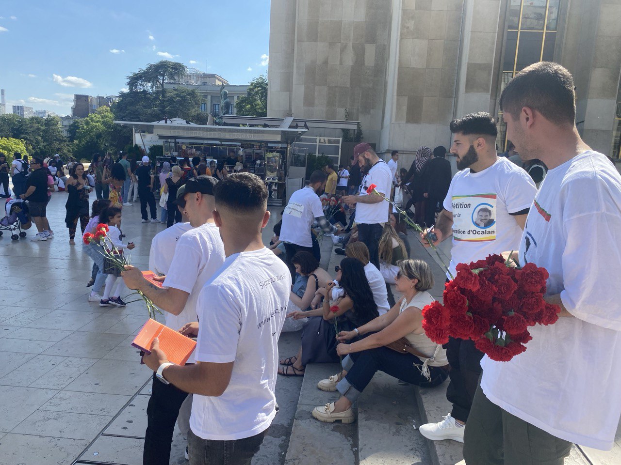 Gençler Önder APO’nun Fransızcaya çevrilmiş kitaplarını “Önder APO’nun ideolojisi dünya halklarına umut oluyor” sözü ile meydandaki kişilere dağıttı.